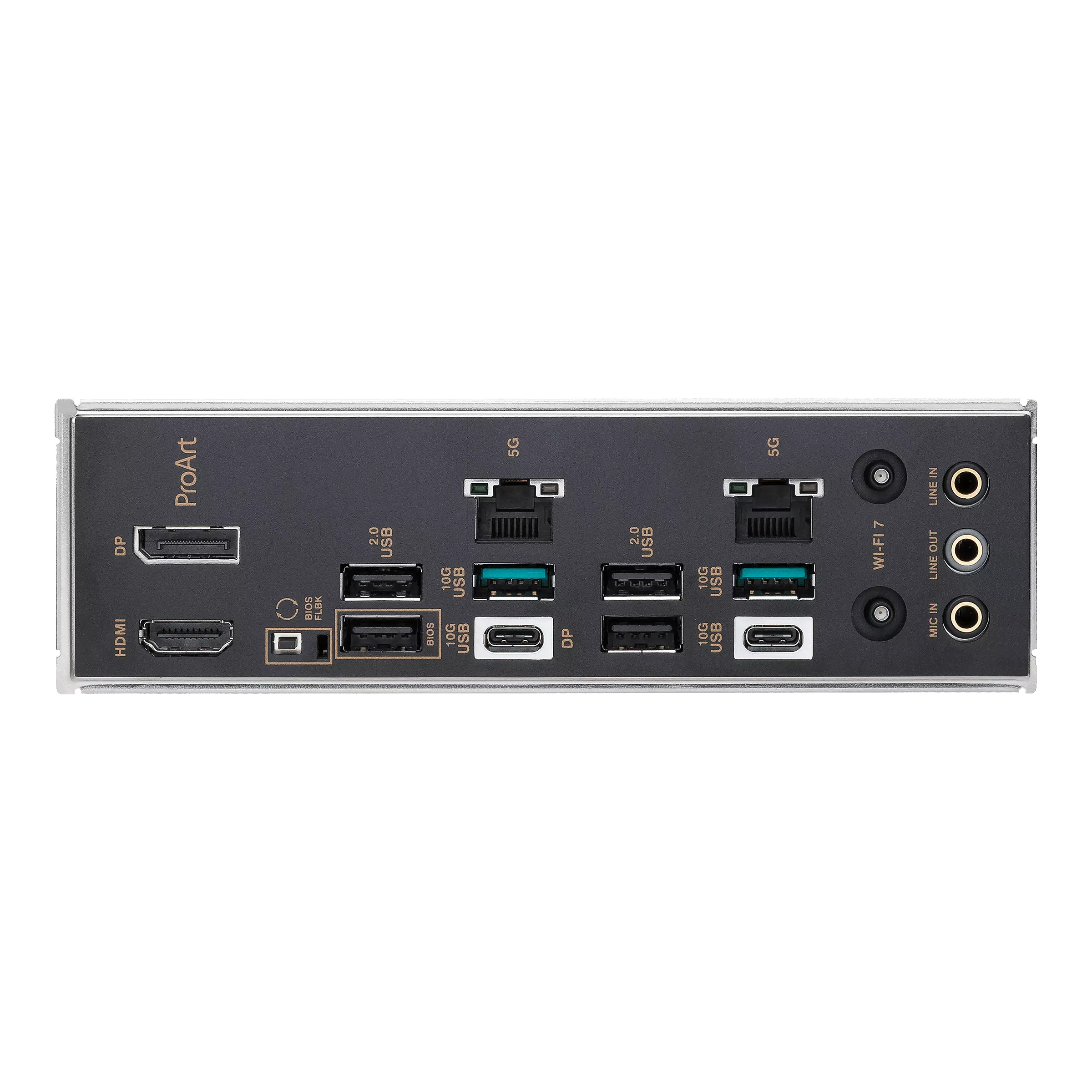 Zadní panel I/O porty: 2 x USB 10Gbps ports (1 x Type-C® + 1 x Type-C® with Alt mode) 2 x USB 10Gbps ports (2 x Type-A) 4 x USB 2.0 ports (4 x Type-A) 1 x DisplayPort 1 x HDMI™ port 1 x Wi-Fi module 2 x Realtek 5Gb Ethernet ports 3 x Audio jacks 1 x BIOS FlashBack™ button
