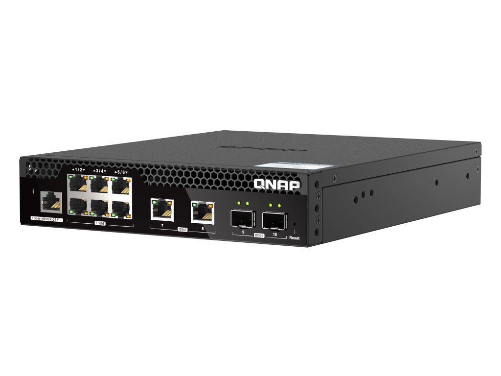 QNAP riadený switch QSW-M2106R-2S2T (6x 2,5GbE RJ45, 2x 10GbE RJ45, 2x 10GbE SFP+, malá šírka)