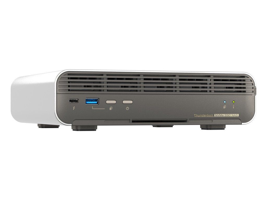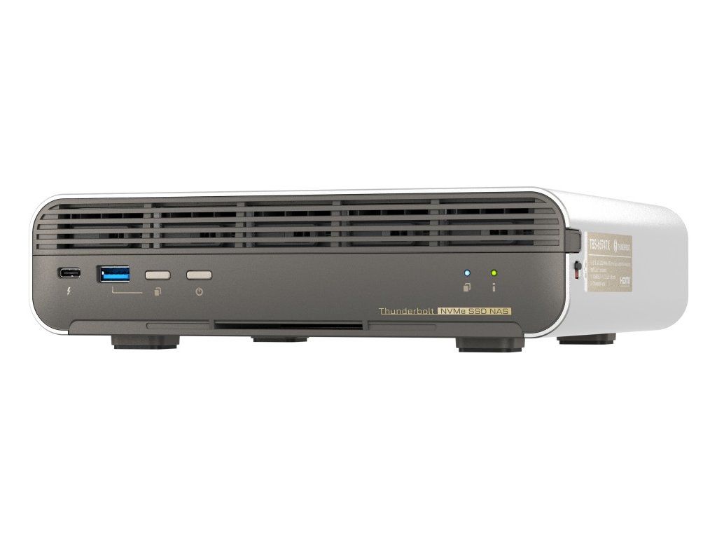 Kompaktní TBS-h574TX Thunderbolt 4 all-flash NASbook je určen pro filmové scény, malá studia, malé produkční týmy a uživatele v malých a středních podnicích a malých kancelářích a zvyšuje produktivitu video produkce. Nabízí vysokorychlostní vstupy/výstupy a výkon procesoru Intel Core, které vyžaduje produkce videa, takže tvůrci používající počítače Mac nebo Windows si mohou vychutnat dosud nejplynulejší střih videa v reálném čase, přenos velkých souborů, překódování videa a zálohování. Zařízení TBS-h574TX jako most mezi předprodukcí a postprodukcí posouvá videoprojekty a týmovou spolupráci na vyšší úroveň. V TBS-h574TX je spuštěn operační systém QuTS hero založený na systému ZFS, který zajišťuje integritu dat. Dle potřeby lze přejít na instalaci operačního systému QTS. TBS-h574TX poskytuje tvůrcům obsahu dokonalou kombinaci stylového designu a výkonu. Díky kovové skříni poskytuje optimalizovaný chladicí výkon. Díky stolnímu designu je zařízení TBS-h574TX prostorově úsporné – menší než papír A4 a s objemem pouze 2,54 litru – ideální pro malá studia nebo videoprodukční týmy, které hledají přenosné řešení. Od verze 5.2.2 již je možné do NAS nainstalovat také QuTS hero na bázi ZFS. * procesor s hybridní architekturou pro multitasking - procesory Intel Core 13. generace s hybridní architekturou (jádro P a jádro E) poskytují vysoký výkon a efektivitu * velmi rychlá úprava souborů RAW - díky adaptéru E1.S na M.2 SSD připojenému do každého slotu můžete flexibilně instalovat pět disků E1.S nebo M.2 PCIe NVMe SSD pro bleskurychlou editaci multimediálních souborů - disk M.2 SSD vyměnitelný za provozu a automatická výměna disků RAID zvyšují spolehlivost systému, snižují riziko ztráty dat a usnadňují probíhající projekty * 2,5GbE a 10GbE jako standard - sítě 2,5GbE a 10GbE urychlují přenos velkých souborů a umožňují připojení většího počtu připojených zařízení/pracovních stanic připojením síťového switche * Thunderbolt 4 pro rychlejší přímé připojení - 2 porty Thunderbolt 4 umožňují přímé připojení pracovních stanic Mac/PC k zařízení TBS-h574TX a poskytují rychlost až 20 Gb/s pro střih videa v rozlišení 4K * rychlejší přenos přes USB - 2 porty USB 3.2 Gen 2 (10 Gb/s) umožňují rychlý import/export souborů z/do externích úložných zařízení