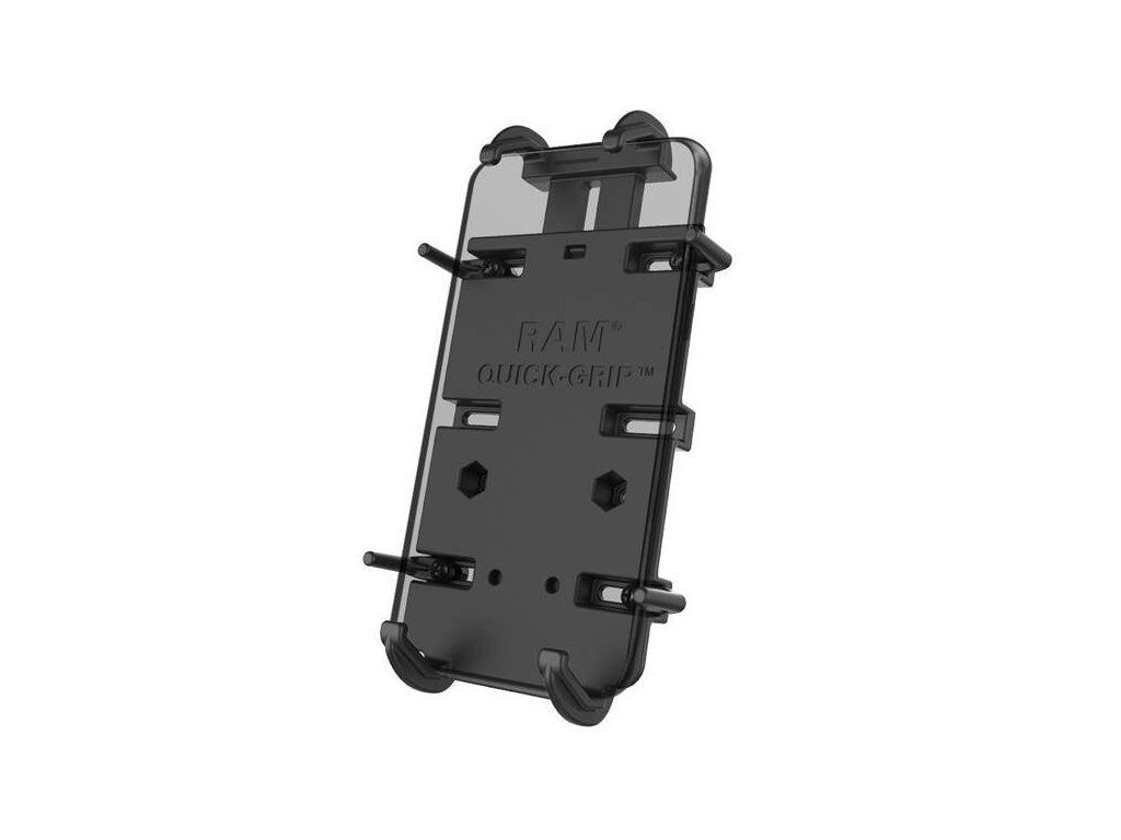 RAM® velký držák Quick-Grip™ Tato verze odpruženého držáku RAM Quick-Grip poskytuje bezpečné uchycení pro různé velké telefony a další zařízení. Nastavitelné boční držáky zajišťují, že se do držáku vejdou také zařízení jako GPS jednotky a Bluetooth reproduktory v uvedených kompatibilních rozměrech. Součástí je sada dvou matic a šroubů pro připevnění kolébky k jakýmkoli komponentům RAM, které obsahují univerzální vzor otvorů AMPS, včetně základů diamantových kuliček RAM. *Pružinový držák je vybaven nastavitelnými bočními podpěrami, které zajišťují bezpečné uchycení různě velkých telefonů a dalších zařízení *Snadné vkládání a vyjímání telefonu jednou rukou *Kompatibilní s diamantovými kulovými základnami RAM® pro upevnění na dvojitá ramena a montážní základny
