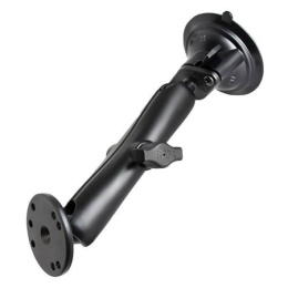 Přísavný držák RAM® Twist-Lock™ s dvojitou koulí a kulatou deskou - dlouhý RAM-B-166-C-202U se skládá z 3,3'' přísavky s otočným zámkem, DLOUHÉHO ramene s dvojitou zásuvkou a kulaté základny, která obsahuje univerzální vzor otvorů AMP. Základna přísavky je navržena tak, aby pevně držela na skle a neporézní plastové povrchy, včetně lepicích disků RAM. Držák je navržen s patentovaným systémem gumových kuliček a zásuvek o průměru 1'' RAM, který má nastavovací body na obou koncích ramene s dvojitou zásuvkou, to umožňuje téměř nekonečné nastavení a dokonalé pozorovací úhly. Vzor otvorů na adaptéru s kulatou základnou se připojí k většině kolébek RAM a kolébkám třetích stran. *Přísavná základna RAM® Twist-Lock™ je ideální pro čelní skla vozidel a jiné neporézní povrchy. *Obsahuje rameno RAM® s dvojitou objímkou velikosti B a 2,5'' kulatou základnu s 1'' gumovou koulí velikosti B, technologie koule a objímky umožňuje téměř neomezenou nastavitelnost. *Vyrobeno z práškově lakovaného hliníku pro námořní použití a vysoce odolného kompozitu pro dlouhou životnost a spolehlivost v nejnáročnějších podmínkách.