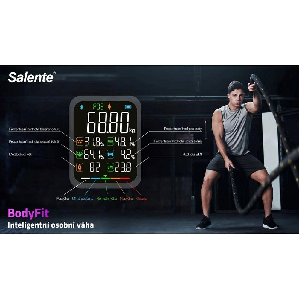Salente BodyFit, chytrá osobní diagnostická fitness váha, Bluetooth, černá