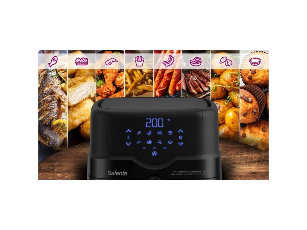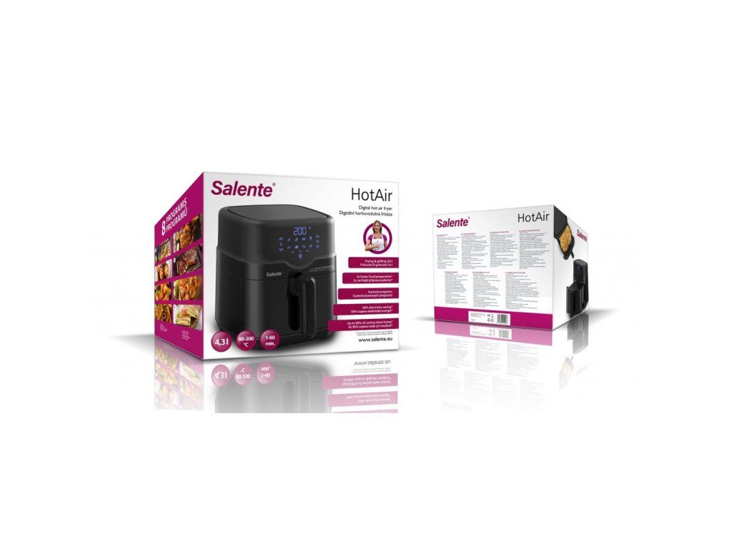 Horkovzdušná fritéza Salente HotAir splňuje současné nejvyšší nároky na zdravou a rychlou přípravu pokrmů a nabízí kombinaci dvou způsobů přípravy - fritování i grilování. I těm nejnáročnějším kuchařům a kuchařkám umožňuje nastavení teploty v rozsahu 80-200 °C v krocích po 1 °C a nastavení času přípravy pokrmu v rozsahu 1-60 minut v krocích po 1 minutě.