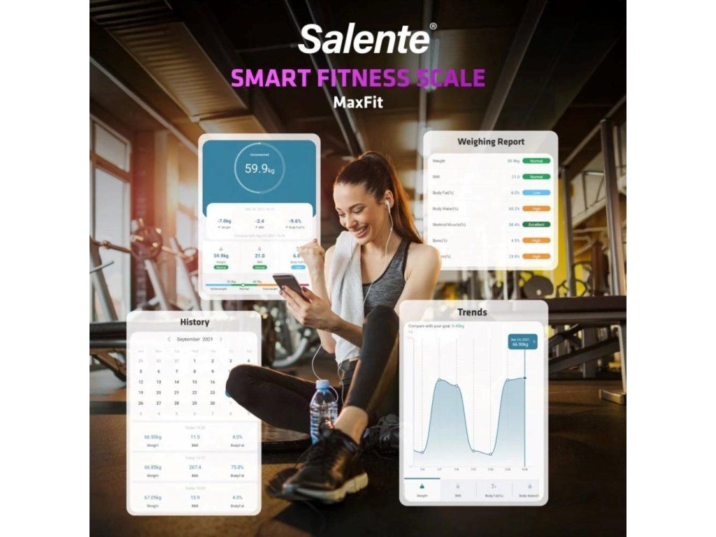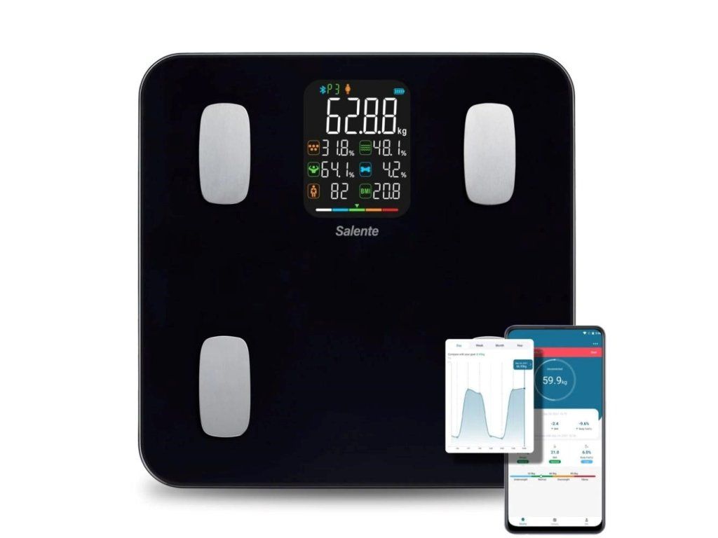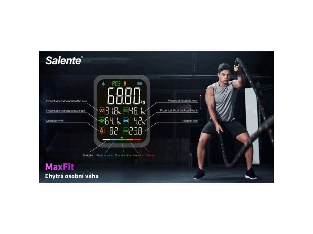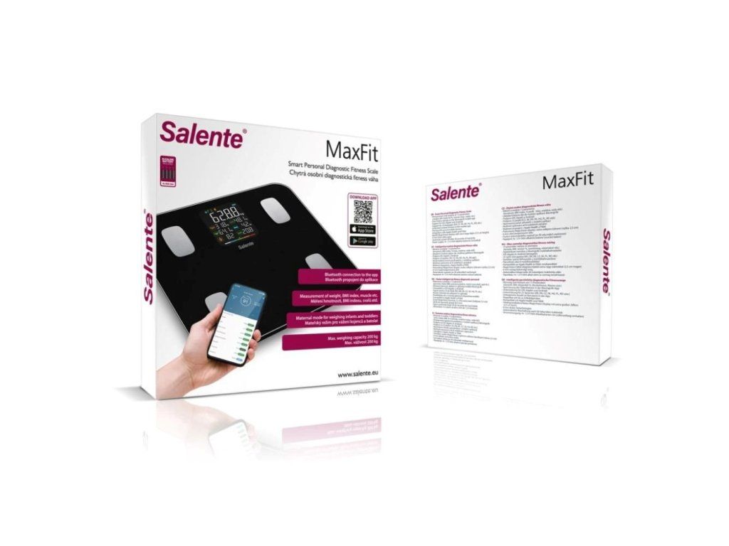 Salente MaxFit, chytrá osobní diagnostická fitness váha, Bluetooth, černá