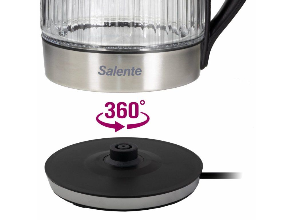 • Objem 1,8 litru • Příkon 2200 W • Tělo ze borosilikátového skla a nerezové oceli • Celoplošné podsvícení (modré nebo červené) • Anti-Calc filtr proti vápenatým usazeninám • Oboustranný ukazatel vodní hladiny • Tlačítko na víku s bezpečnostní pojistkou • Středový 360° konektor s životností 10 milionů zdvihů