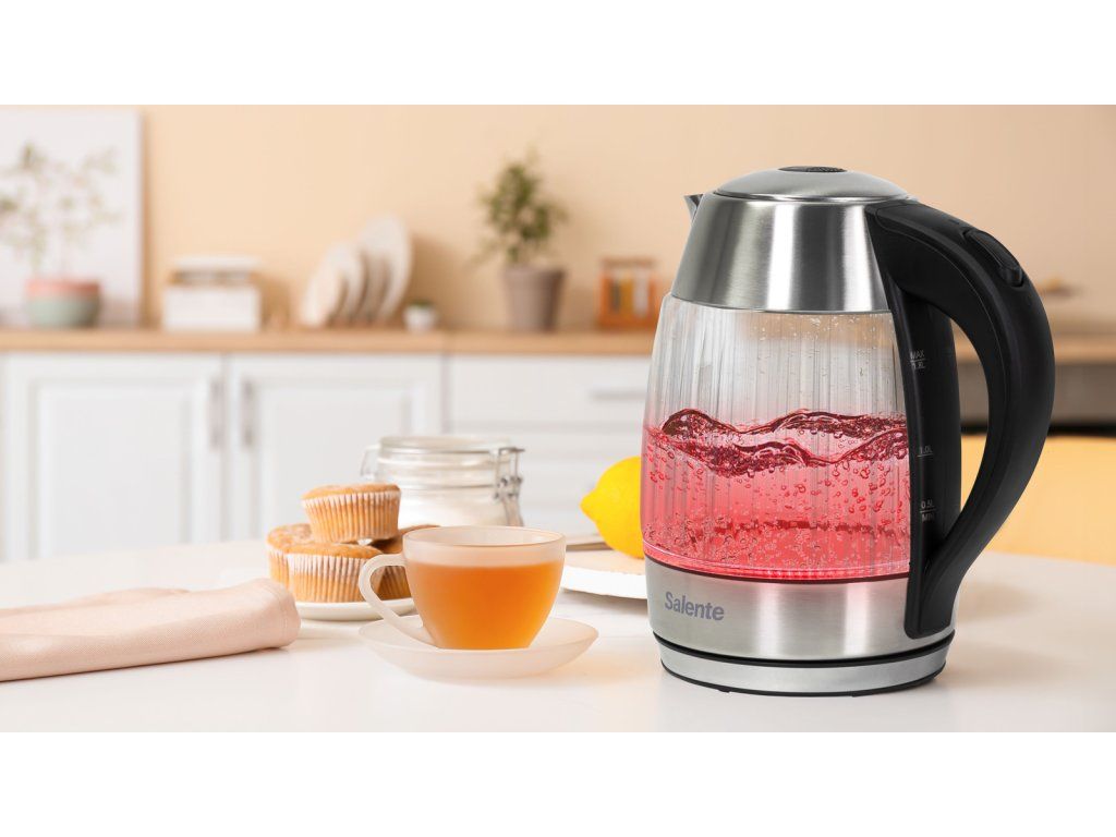 Salente StripeGlass, rýchlovarná kanvica 1,8 l, nerez/sklenená, červené podsvietenie
