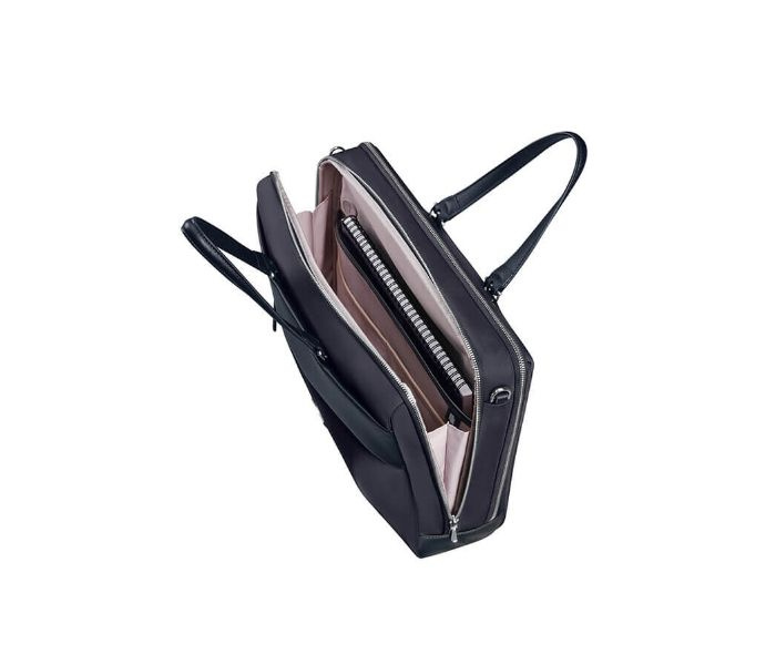 Dámská kabelka na notebook Samsonite Bailhandle 2 Comp 15,6'' z kolekce Zalia 3.0. Materiál: Recyclex - Vnější a vnitřní látka je vyrobena z 19 recyklovaných PET lahví (0,5l-20g) Popis: prostor pro notebook: 39,6 cm / 15,6'' (37,5 x 25,9 x 2,8 cm) prostor pro tablet: 26,7 cm / 10,5'' (26,6 x 18,3 x 1,5 cm) odnímatelný ramenní popruh + dvě ruční ucha kapsa na power banku smart sleeve - návlekový pásek sloužící k snadnému připevnění na rukojeť kufru EASY PASS Systém - umožňuje přístup kabelů skrze různé kapsy zavazadla bez toho, aby se vypojily z elektronického zařízení během jeho nabíjení kapsa na zip z přední strany rozměr: 40 x 30 x 10cm objem: 14,5 l váha: 1 kg Záruka 2 roky.