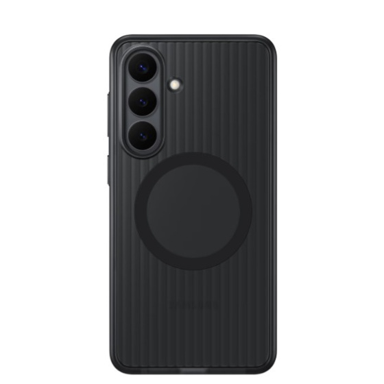 Robustní design. Připravený na všechno Ochranný kryt s magnetem poskytuje spolehlivou ochranu proti pádům a poškrábání. Až 5× se podrobil testování pro vojenský standard MIL-STD-810H, díky tomu odolá opakovaným nárazům. Prošel pěti po sobě jdoucími testy, z kterých každý zahrnoval 26 pádů z výšky 1,22 m, na všechny plochy, hrany i rohy, aby kryt dokázal zabezpečit skutečně komplexní ochranu. Vyvýšené okraje se postarají o displej i fotoaparát, zatímco drážkované boky zlepšují uchopení. Prodyšná vnitřní vrstva tlumí nárazy a zvyšuje komfort při používání. Vestavěné magnety usnadňují bezdrátové nabíjení tvého Galaxy S26+ a umožňují jednoduché připojení kompatibilních magnetických doplňků – stačí jen přiložit telefon.
