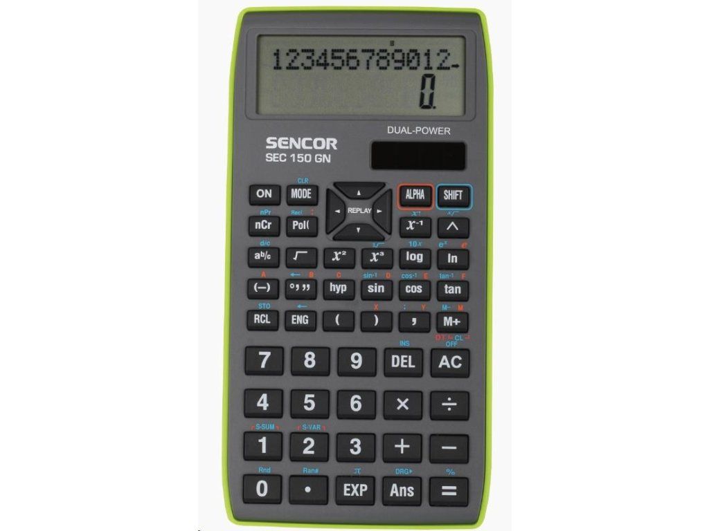 Školská kalkulačka v kombinácii šedo-zelenej s pevnou plastovou krytkou