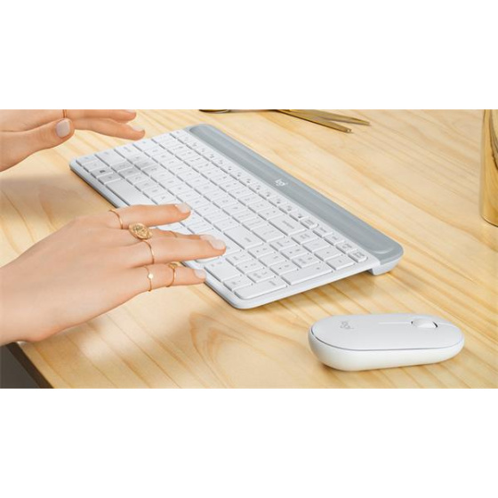 Nízkoprofilové klávesy uchycené technologií Scissor umožňují plynulé, snadno návykové psaní podobně jako na notebooku. Ladný, zaoblený tvar myši skvěle padne do levé i pravé ruky.