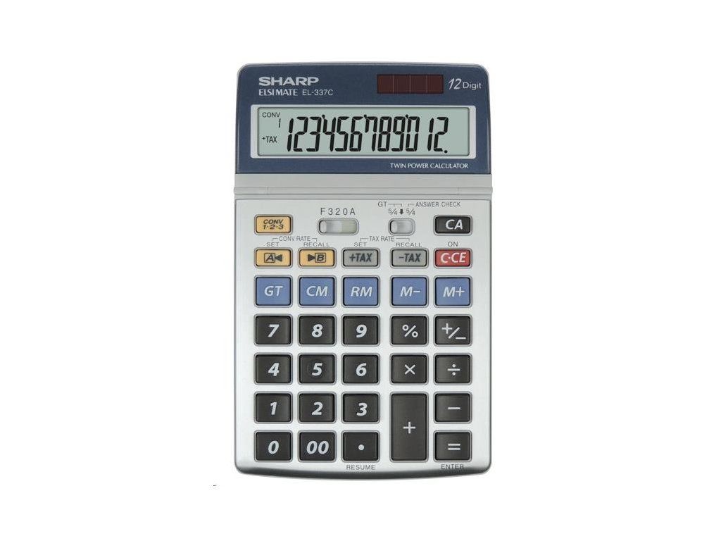 Stolný kalkulačka s 12-miestnym LCD displejom.