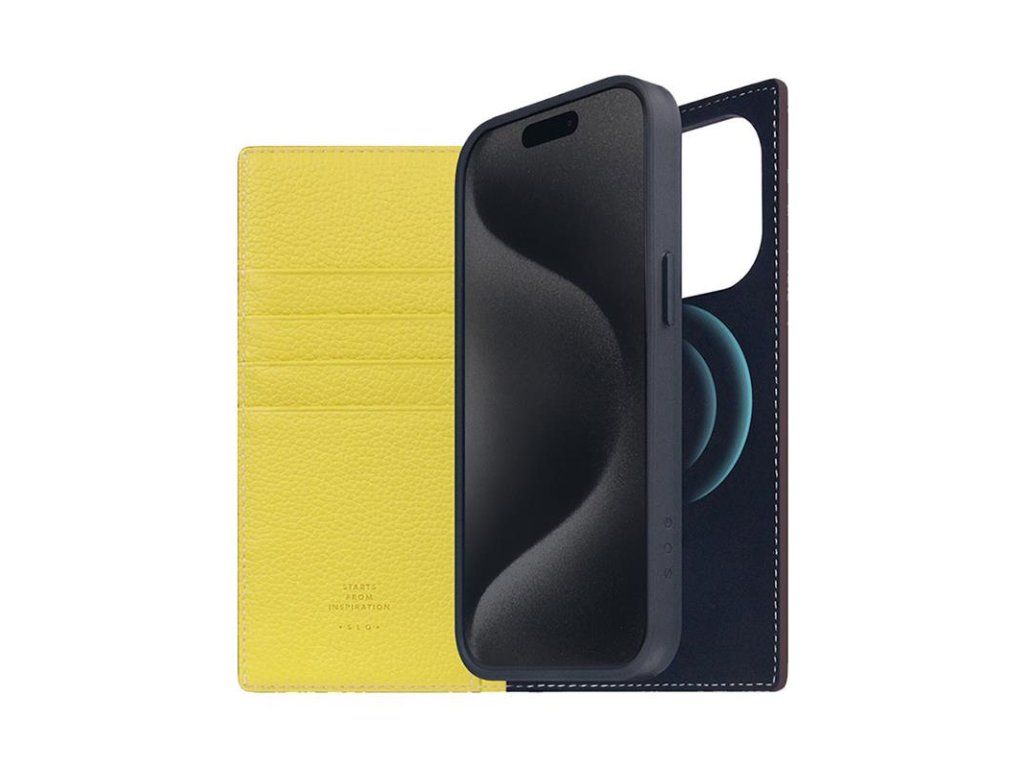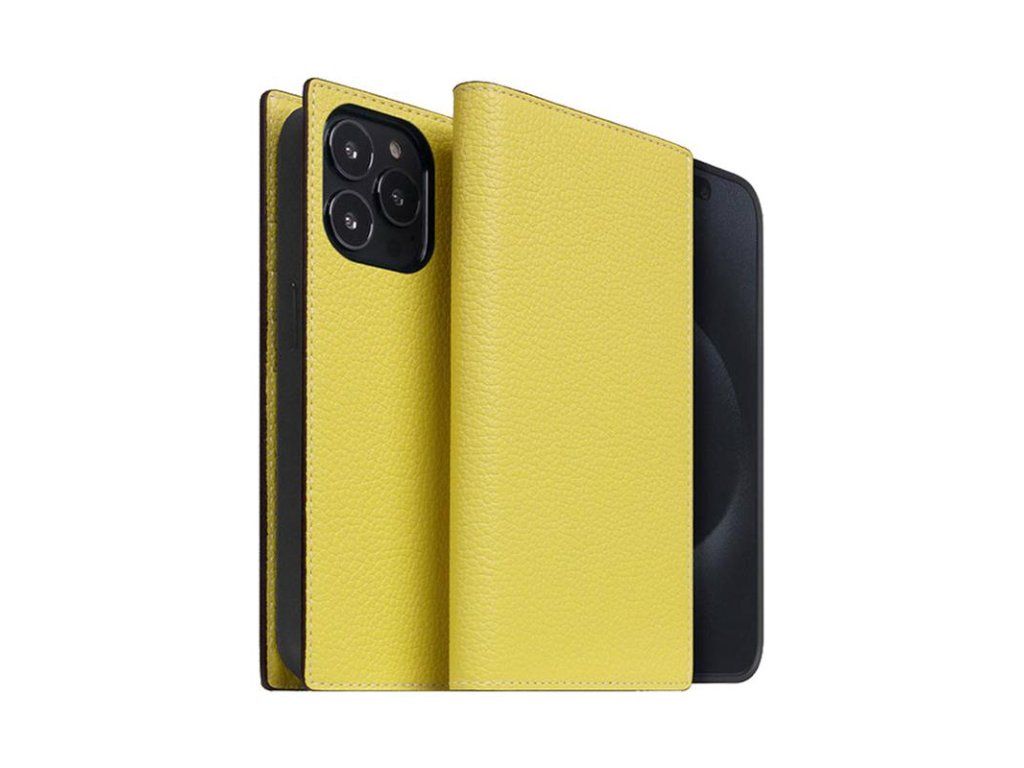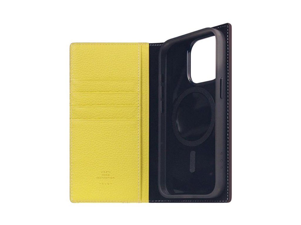 SLG Design puzdro D8 Neon Full Grain Leather Diary pre iPhone 15 Pro - Lemon