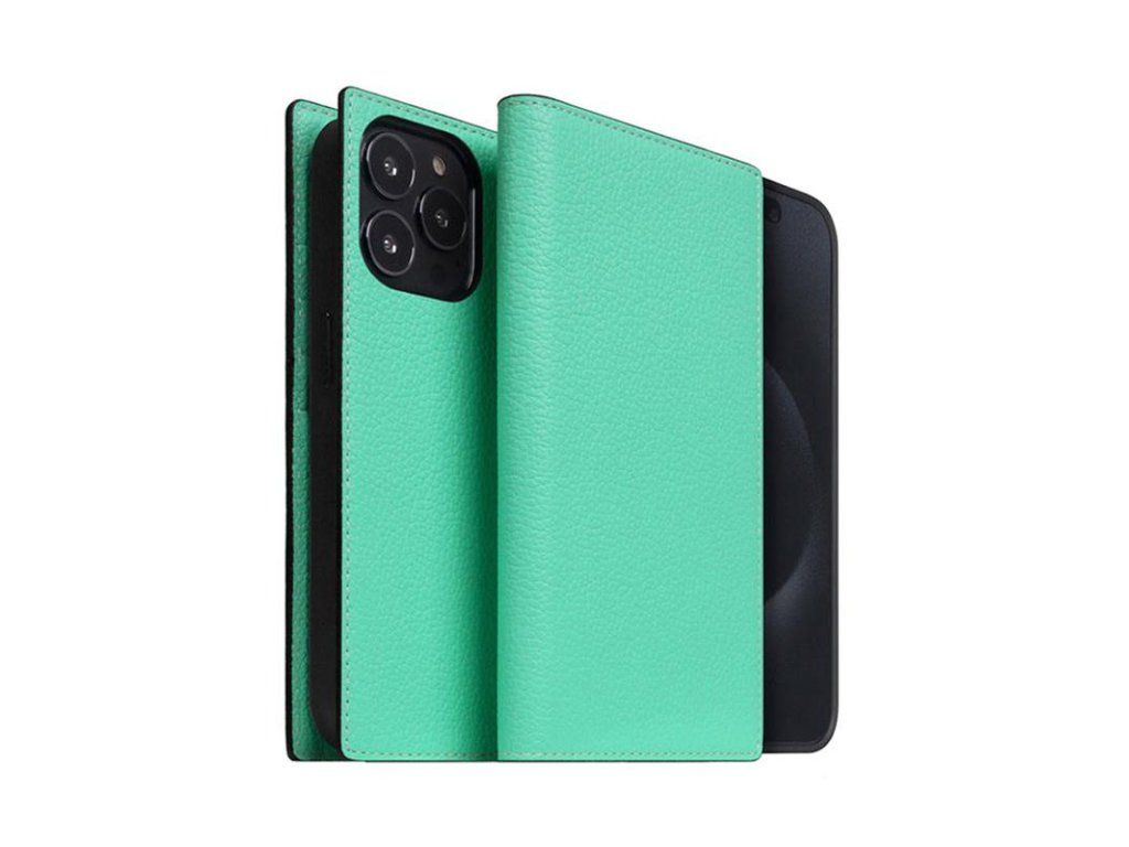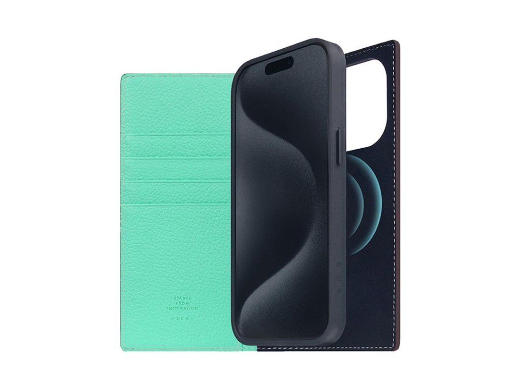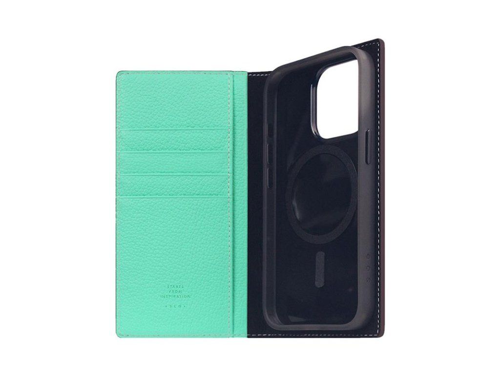 SLG Design puzdro D8 Neon Full Grain Leather Diary pre iPhone 15 Pro - Teal