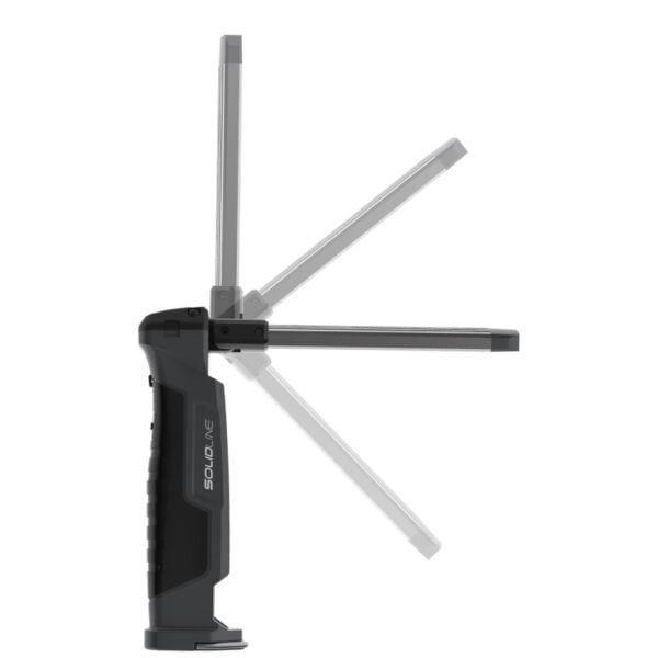 Vďaka hliníkovej hlave lampy je možné ju sklápať aj otočiť o 180°, čo umožňuje spoľahlivé osvetlenie aj vo stiesnených pracovných priestoroch. Bočné COB záplavové LED poskytuje biele alebo červené svetlo v piatich rôznych režimoch, zatiaľ čo dodatočná bodová LED poskytuje bodové biele svetlo na dvoch úrovniach. Pre optimálne držanie je vybavená pogumovanou rukoväťou. Integrovaná batéria Solidline SW2R sa ľahko nabíja pomocou micro-USB.