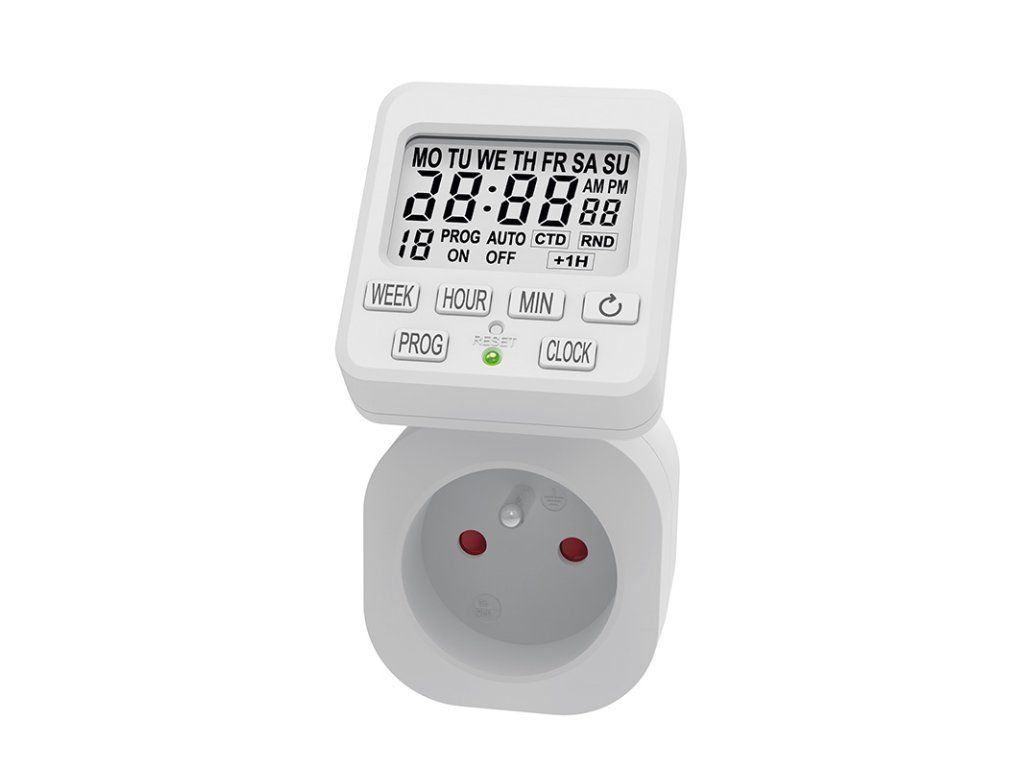 Digitálny programovateľný časovač s detskou poistkou, ktorý môže byť výborným pomocníkom pre spúšťanie Vašich elektrospotrebičov v tú správnu chvíľu. Časovač je vybavený možnosťou nastavenia pre 18 spínacích cyklov a 15 režimov opakovania podľa Vašich požadovaných dní a hodín. Ďalšou možnosťou je režim náhodného časového spúšťania alebo odpočtu.