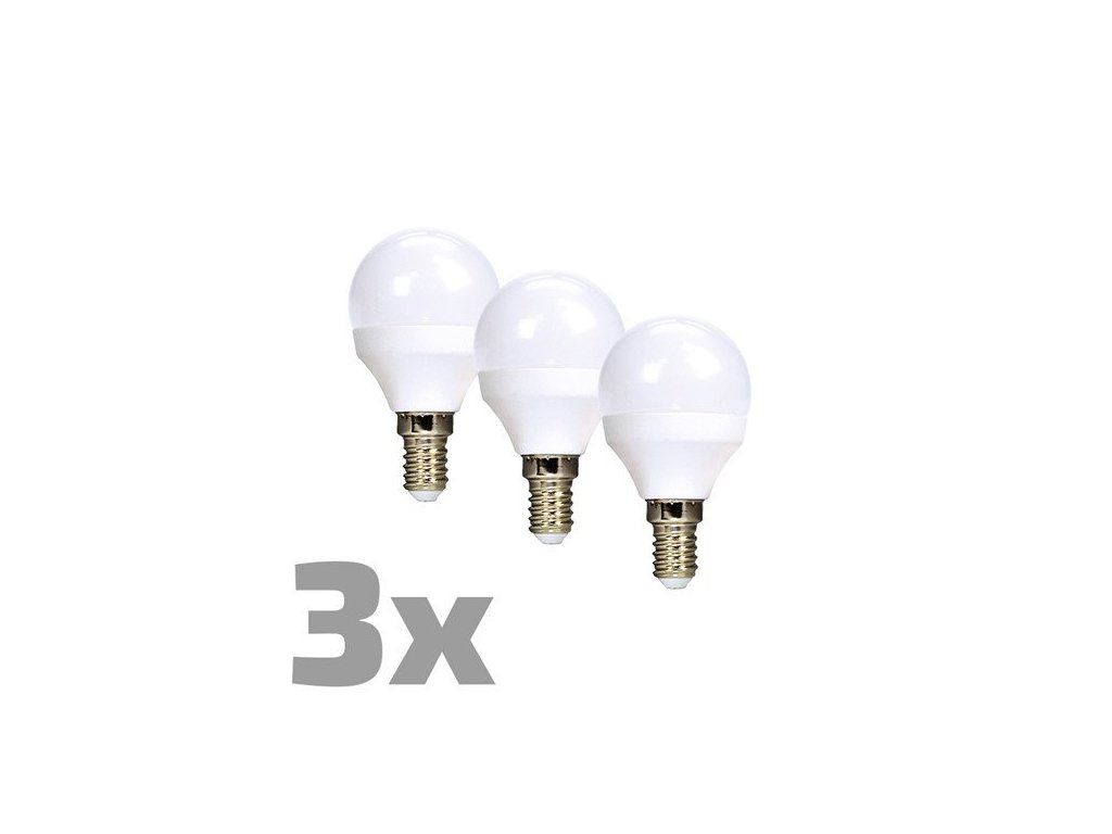 Solight ECOLUX LED žiarovka 3-pack, miniglobe, 6W, E14, 3000K, 450lm, biele prevedenie, 3ks