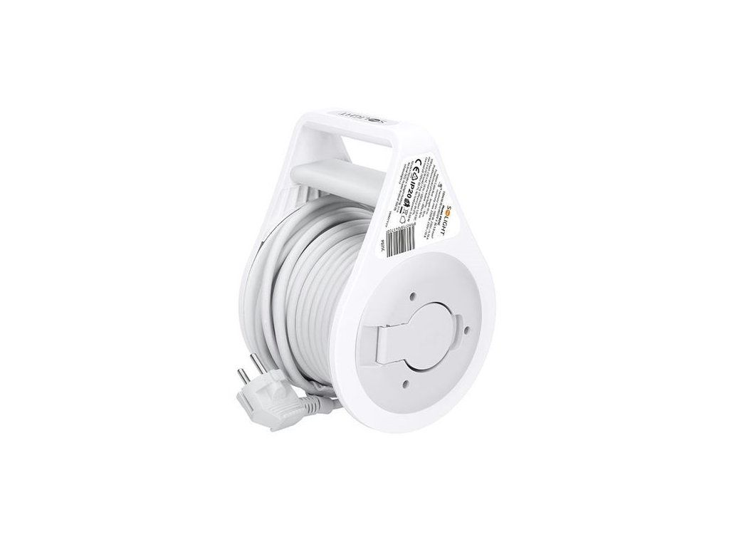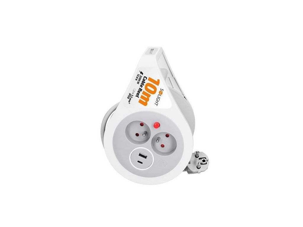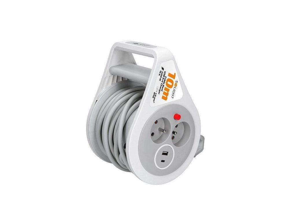 Solight prodlužovací přívod na bubnu 10m, USB A+C, 2 zásuvky, šedý kabel, 3x 1,0mm2