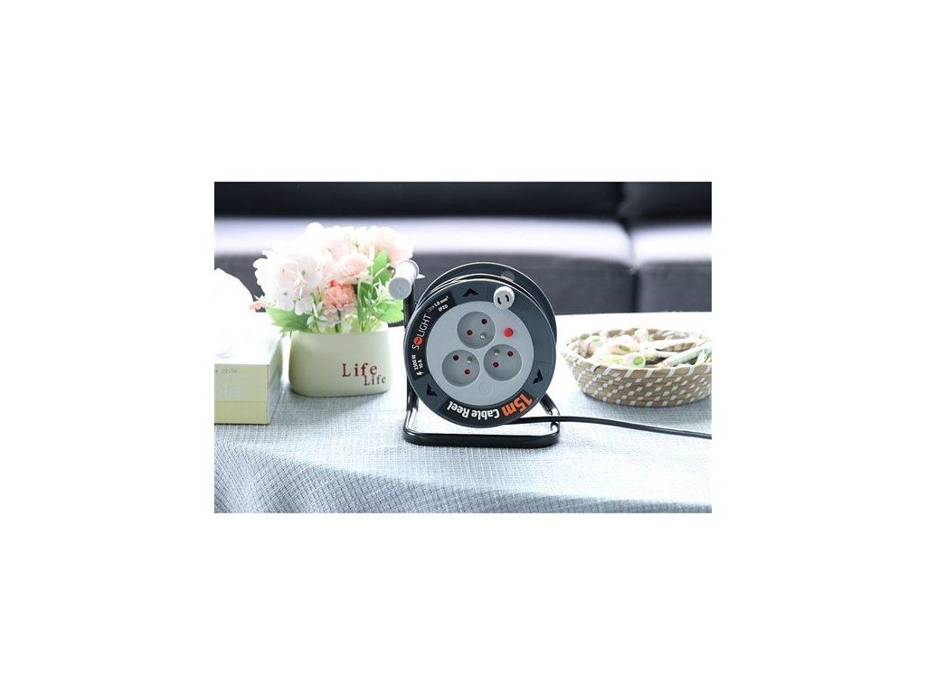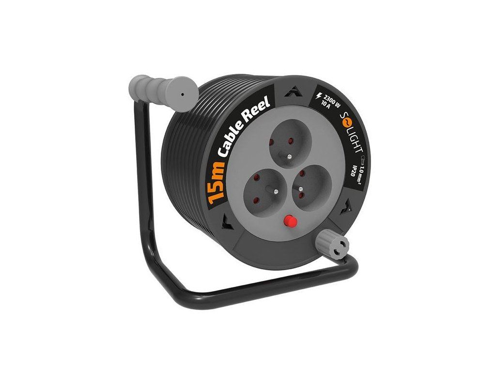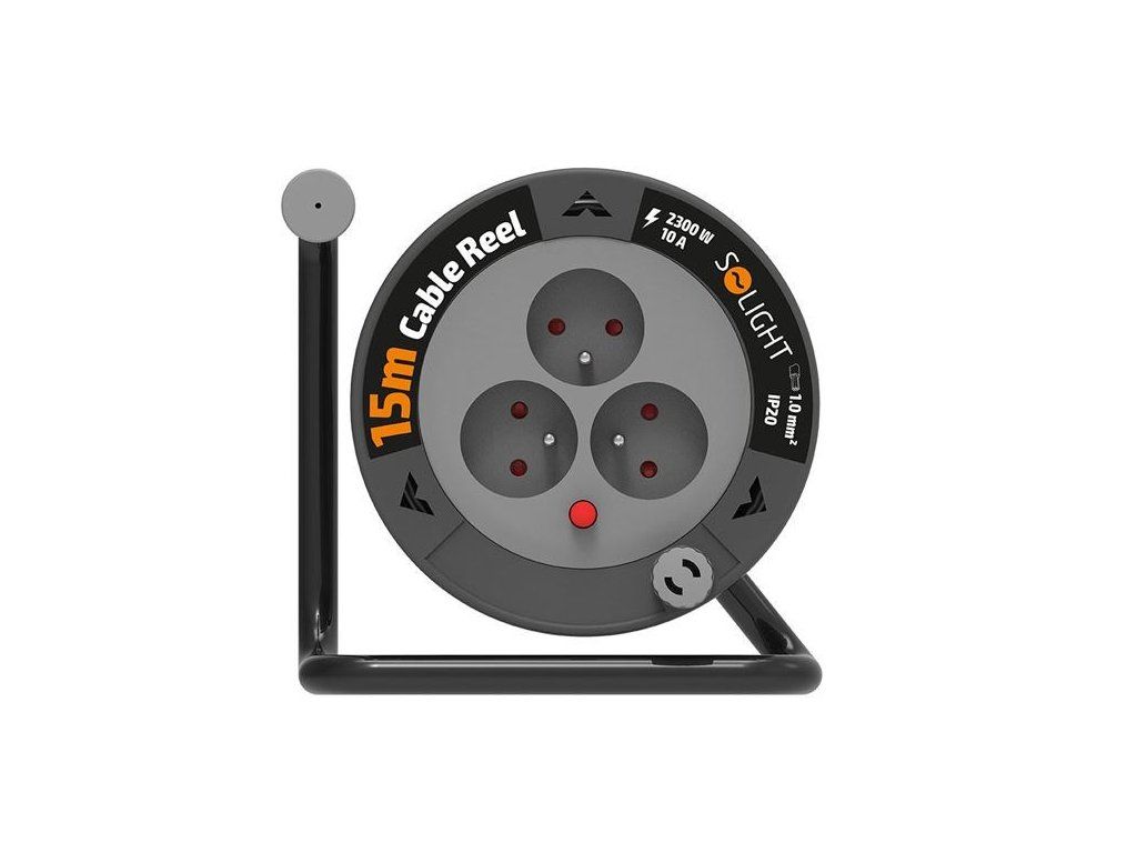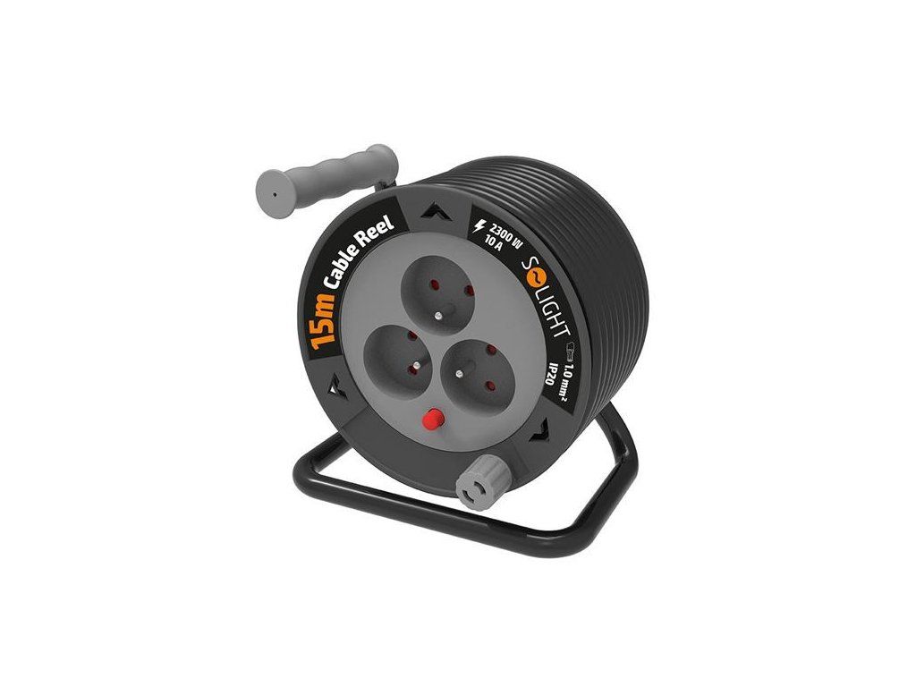 Solight prodlužovací přívod na bubnu 15m, 3 zásuvky, černý kabel, 3x 1,0mm2