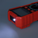 Digitálny multimetr V32 Multimetr V32 je kompaktný a presný prístroj na meranie elektrických veličín. Špecifikácie: Meranie: Napätie (DC/AC): až 600 V (DC presnosť ±0,5 % až ±0,8 %, AC presnosť ±1 %). Prúd (DC/AC): až 10 A. Odpor: až 200 M?. Testy: diódy, tranzistory (hFE), batérie (1,5 V, 3 V, 9 V). Detekcia napätia bez kontaktu (NCV): 30–1000 V. Funkcie: Podsvietený displej pre lepšie čítanie hodnôt aj za zlých svetelných podmienok. Integrovaná LED svietidlo na prácu v tme. Automatické vypnutie po 15 minútach. Bezpečnosť: Certifikácia CAT III 600 V, istič: F200mA/250V a F10A/250V. Napájanie: 2x batérie AAA (1,5 V). Rozmery: 150 x 75 x 47 mm. Hmotnosť: 300 g. Ideálne pre profesionálov aj domáce použitie.