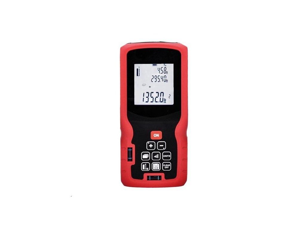 merení vzdálenosti, výpočet plochy, objemu a merení pomocí Pythagorovy vety (vypočtení délky tretí strany ze dvou známých délek stran) rozsah merení vzdálenosti: 0,05 - 80m jednotky: m, ft, in trída laseru: II, mené než 1mW typ laseru: 635nm presnost merení ±1,5mm rozlišení: 1mm teplotní rozsah použití -10 + 50°C podsvícení displeje horizontální a vertikální vodováha pamet pro 20 posledních merení automatické vypnutí indikátor vybité baterie baterie: 2x1,5V, AAA rozmery: 125x58x30mm