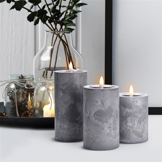 Solight sada LED svíček s časovačem, 3x svíčka, 10/13/15cm, šedá, 2xAA