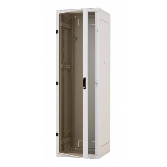 Popis: • 19“ stojanový rozvaděč s krytím IP 20 • Součástí rozvaděče jsou 4 posuvné vertikální lišty k instalaci zařízení (6 lišt pro rozvaděče hlubší než 800?mm). • Konstrukce rozvaděče: – Ocelový svařovaný skelet s odnímatelnými krycími panely – Dveře jednokřídlé nebo dvoukřídlé ve variantách celoplechové, perforované (80% prostupnost) nebo prosklené s bezpečnostním tvrzeným sklem 4mm. Mohou být na přední i zadní straně rozvaděče. • Dovolené zatížení jednotlivých dveří je max. 20 kg. • Minimální tloušťka povrchové úpravy je 65 µm. • Tyto rozvaděče jsou určeny k instalaci datových a telekomunikačních zařízení a jejich distribučních systémů. • Rám rozvaděče a všechny oddělitelné části (boční a zadní kryty, dveře…) jsou propojeny pomocí zemnících kabelů, které musí být důkladně připevněny a zasunuty do konektorů po celou dobu užívání rozvaděče. • Na spodní části rozvaděče je umístěn šroub M8 jako hlavní zemnící bod. • Kabelové vstupy kryté vylamovacími záslepkami jsou umístěny v horní a ve spodní části rozvaděče.
