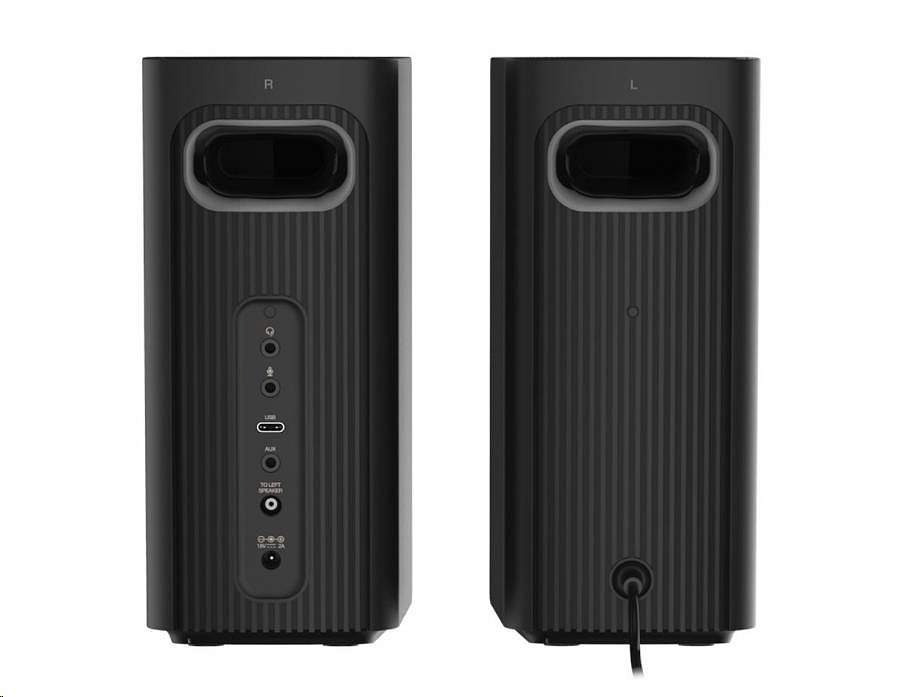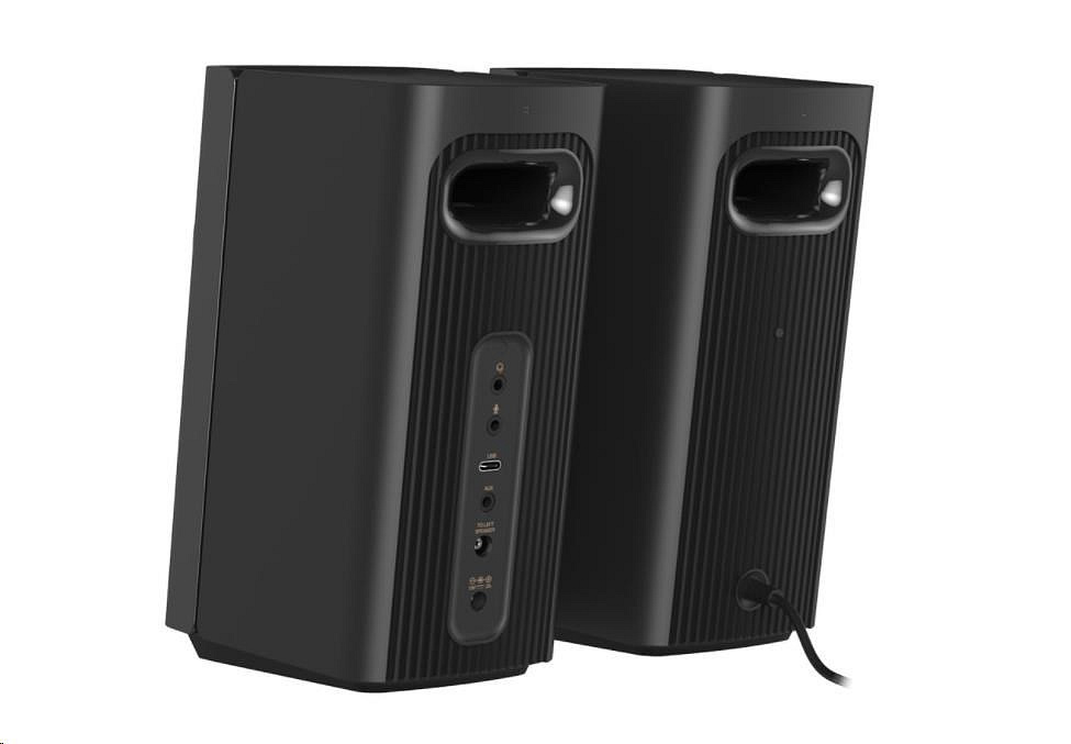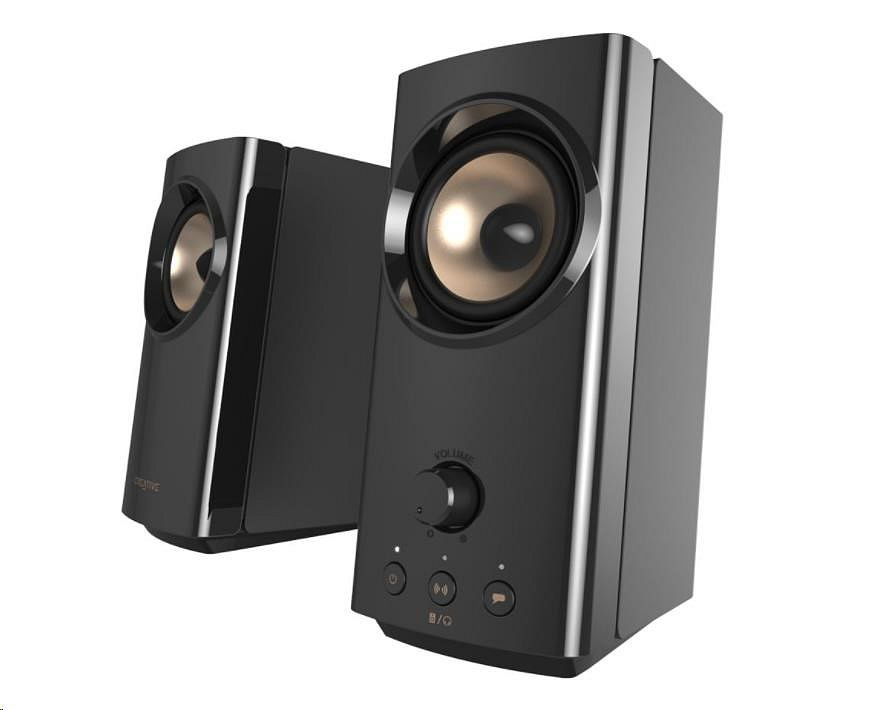 Kompaktné stolové reproduktory Hi-Fi 2.0 s funkciou Clear Dialog a Surround od spoločnosti Sound Blaster pre počítače a notebooky