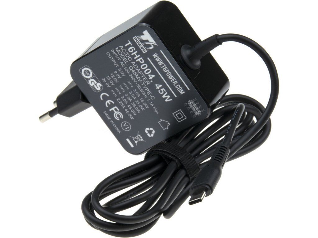 Výkon: 45 W Vstup: 100-240 V ~ 50/60 Hz 1,5 A Výstup: 20V 2.25A/ 15V 3A/ 12V 3A/ 9V 3A/ 5V 3A Konektor: USB-C Záruka: 3 roky Délka kabelu: 1.7 m Rozměry adaptéru: 96x59x30 mm Hmotnost: 0.16 kg Univerzální adaptér značky T6 Power s výkonem 45 W je ideálním zdrojem energie pro notebooky, ultrabooky, MacBooky, tablety, mobílní telefony, monitory, atd. Nabíjet v podstatě můžete libovolné zařízení, který vyžaduje výkon adaptéru 45 W a níže a kontektor USB-C. Adaptér T6 Power je díky řídícímu čipu schopný se přizpůsobit vstupnímu napětí od 100 V až po 240 V, při frekvenci 50/60 Hz a 1,5 A. Adaptér prošel certifikací předních autorit, jako jsou TÜV, FCC, CB a splňuje evropské normy CE, RoHS, REACH. Součástí univerzálního adaptéru pro notebooky je ochrana proti přepětí, ochrana proti nadměrnému proudu, ochrana proti přehřátí, a další bezpečnostní prvky. Kompatibilní modely: Acer Chromebook 311 C722, Acer Chromebook 311 C722T, Acer Chromebook 314 CB314-2H, Acer Chromebook 314 CB314-2HT, Acer Chromebook Spin 311 R722T, Acer TravelMate B3 B311RN-32, Acer TravelMate P2 P214-53, Acer TravelMate P2 P215-52, Acer TravelMate Spin B3 B311-31, Acer TravelMate Spin B3 B311R-31, Acer TravelMate Spin B3 B311R-32, Acer TravelMate Spin B3 B311RN-31, Dell Latitude 12 5289, Dell Latitude 12 7200 2in1, Dell Latitude 12 7210 2in1, Dell Latitude 12 7212 Rugged Extreme Tablet, Dell Latitude 12 7220 Rugged Extreme Tablet, Dell Latitude 12 7220EX Rugged Extreme Tablet, Dell Latitude 13 5320, Dell Latitude 13 7310, Dell Latitude 13 7389, Dell Latitude 13 7389 2in1, Dell Latitude 13 7390 2in1, Dell Latitude 14 7410, Dell Latitude 5289, Dell Latitude 5289 2in1, Dell Latitude 5320, Dell Latitude 5320 2in1, Dell Latitude 7200 2in1, Dell Latitude 7210 2in1, Dell Latitude 7310, Dell Latitude 7310 2in1, Dell Latitude 7389, Dell Latitude 7410, Dell Latitude 7410 2in1, Dell Latitude 7410 Chromebook, Dell Latitude 7410 Chromebook 2in1, Dell XPS 13 7390, Dell XPS 13 9380, Hewlett Packard Pavilion x2 10-n000 serie, Hewlett Packard Pavilion x2 10-n100 serie, Hewlett Packard Pavilion x2 10-n200 serie, Hewlett Packard Pavilion x2 10T-n000 serie, Hewlett Packard Pavilion x2 10T-n100 serie, Hewlett Packard x2 210 G1, Lenovo ThinkPad 13 20GL Chromebook serie, Lenovo ThinkPad 13 20GM Chromebook serie, Lenovo ThinkPad A275, Lenovo ThinkPad A275 20KC, Lenovo ThinkPad A275 20KD, Lenovo ThinkPad A485, Lenovo ThinkPad A485 20MU, Lenovo ThinkPad A485 20MV, Lenovo ThinkPad L14 20U1, Lenovo ThinkPad L14 20U2, Lenovo ThinkPad L14 20U5, Lenovo ThinkPad L14 20U6, Lenovo ThinkPad L14 20X1, Lenovo ThinkPad L14 20X2, Lenovo ThinkPad L14 20X5, Lenovo ThinkPad L14 20X6, Lenovo ThinkPad L14 Gen 1, Lenovo ThinkPad L14 Gen 2, Lenovo ThinkPad L15 20U3, Lenovo ThinkPad L15 20U4, Lenovo ThinkPad L15 20U7, Lenovo ThinkPad L15 20U8, Lenovo ThinkPad L15 20X3, Lenovo ThinkPad L15 20X4, Lenovo ThinkPad L15 20X7, Lenovo ThinkPad L15 20X8, Lenovo ThinkPad L15 Gen 1, Lenovo ThinkPad L15 Gen 2, Lenovo ThinkPad L490, Lenovo ThinkPad L490 20Q5, Lenovo ThinkPad L490 20Q6, Lenovo ThinkPad L590, Lenovo ThinkPad L590 20Q7, Lenovo ThinkPad L590 20Q8, Lenovo ThinkPad T14s 20T0, Lenovo ThinkPad T14s 20T1, Lenovo ThinkPad T14s 20UH, Lenovo ThinkPad T14s 20UJ, Lenovo ThinkPad T14s Gen 1, Lenovo ThinkPad T14s Gen 2, Lenovo ThinkPad T14s Gen 2 20WM, Lenovo ThinkPad T14s Gen 2 20WN, Lenovo ThinkPad T14s Gen 2 20XF, Lenovo ThinkPad T14s Gen 2 20XG, Lenovo ThinkPad T480, Lenovo ThinkPad T480 20L5, Lenovo ThinkPad T480 20L6, Lenovo ThinkPad T490s, Lenovo ThinkPad T490s 20NX, Lenovo ThinkPad T490s 20NY, Lenovo ThinkPad T495s, Lenovo ThinkPad T495s 20QJ, Lenovo ThinkPad T495s 20QK, Lenovo ThinkPad X1 Carbon Gen 5th 20HQ, Lenovo ThinkPad X1 Carbon Gen 5th 20HR, Lenovo ThinkPad X1 Carbon Gen 5th 20K3, Lenovo ThinkPad X1 Carbon Gen 5th 20K4, Lenovo ThinkPad X1 Carbon Gen 6th 20KG, Lenovo ThinkPad X1 Carbon Gen 6th 20KH, Lenovo ThinkPad X1 Tablet Gen 1, Lenovo ThinkPad X1 Tablet Gen 1 20GG, Lenovo ThinkPad X1 Tablet Gen 1 20GH, Lenovo ThinkPad X1 Tablet Gen 2, Lenovo ThinkPad X1 Tablet Gen 2 20JB, Lenovo ThinkPad X1 Tablet Gen 2 20JC, Lenovo ThinkPad X1 Yoga 20JD, Lenovo ThinkPad X1 Yoga 20JE, Lenovo ThinkPad X1 Yoga 20JF, Lenovo ThinkPad X1 Yoga 20JGDodatočné parametre