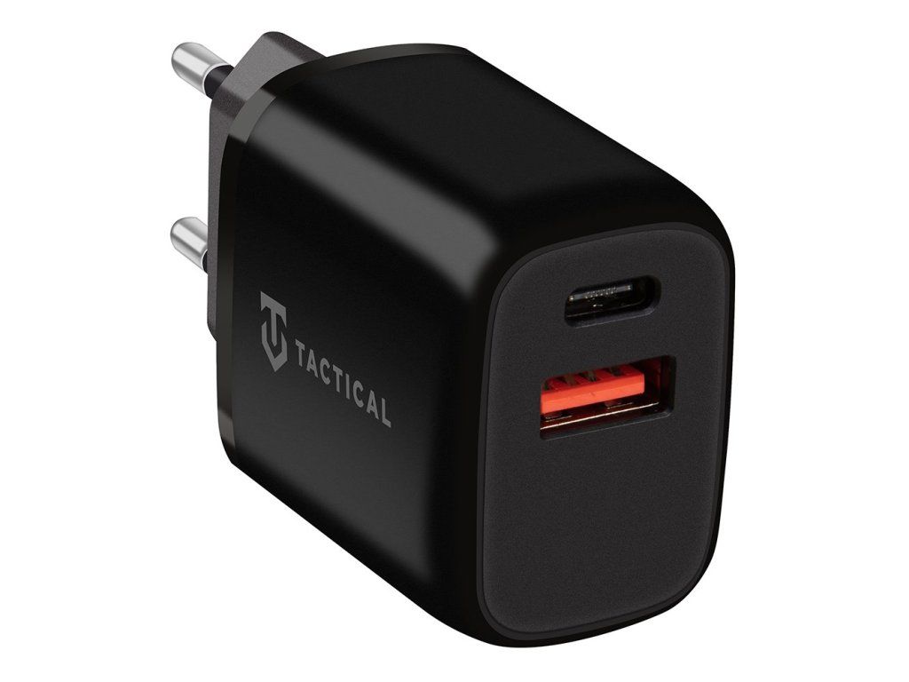 Cestovní nabíječka Tactical Base Plug Dual *Minimalistický design s vysokým výkonem až 20 W *Podpora rychlého a bezpečného nabíjení díky technologii PD/QC 3.0 *Dva výstupní porty – USB-C a USB-A *Nabije až 4× rychleji než běžné nabíječky *Kompaktní rozměry: ideální na cesty (48 g, délka 80 mm) *Odolné a nehořlavé materiály (ABS plast, STANDARD UL94) *Čtyřstupňová ochrana proti přebití, přetížení, přehřátí a zkratu *Ekologické balení z recyklovaného papíru