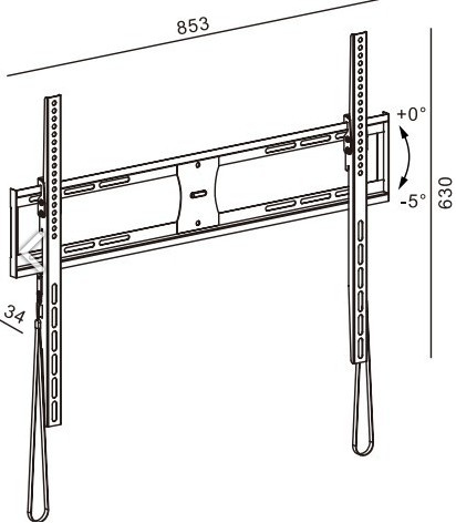 Minimální velikost obrazovky: 55'' Maximální velikost obrazovky: 100'' VESA max: 800 x 600 Maximální hmotnost televize: 65 kg Vertikální nastavení: 5 ° Vzdálenost od zdi: 34 mm