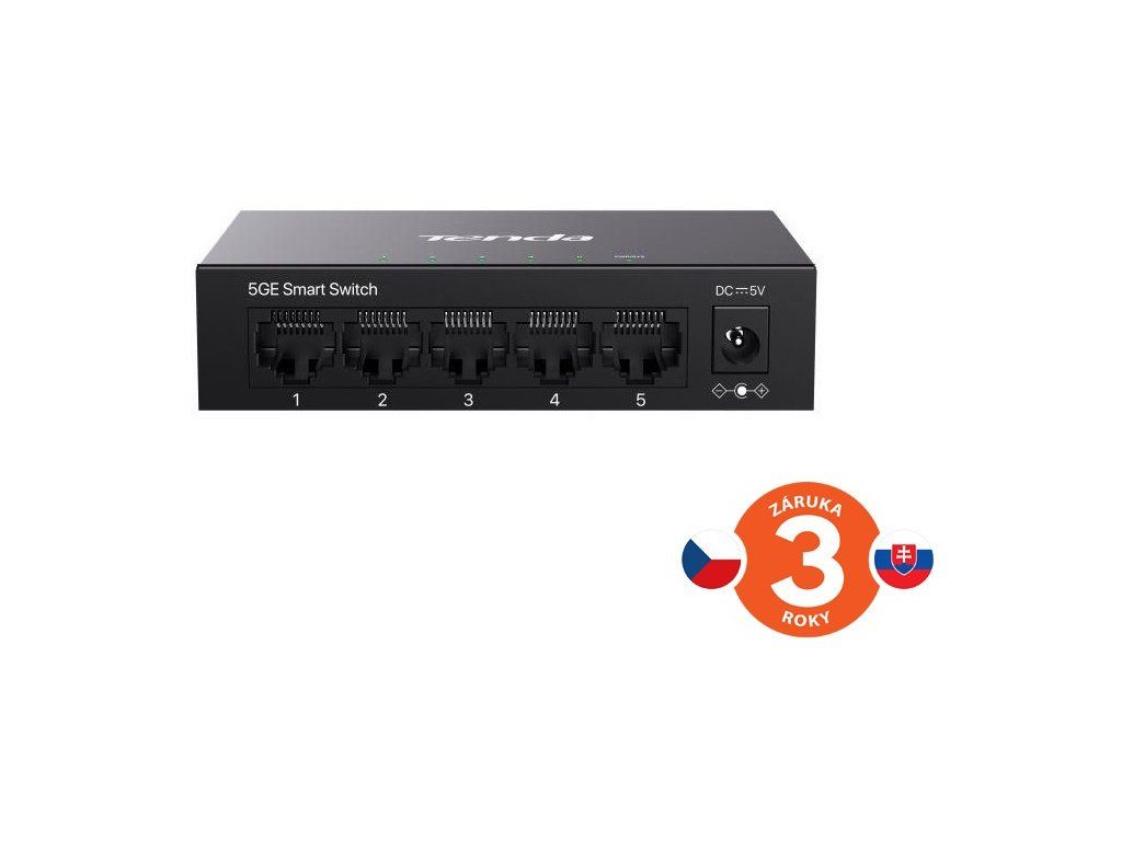 Tenda TEG2205D Websmart L2 cloud managed switch, 5x 10/100/1000 Mbps, Kov, Fanless - bez ventilátorov
