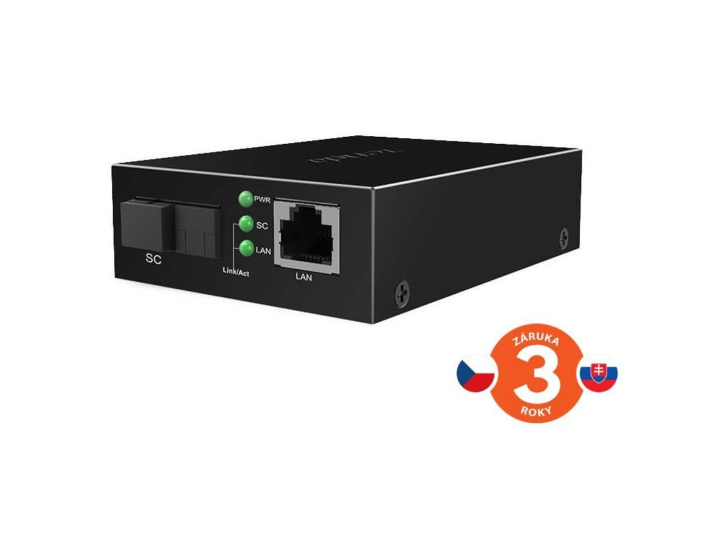 Popis produktu Tenda TFC300A je gigabitový převodník mezi ethernetovým a optickým připojením. Podporuje připojení singlemode vlákna pomocí konektoru SC, tento optický signál poté převádí na elektrický - do ethernetového kabelu a obráceně. Podporovaná délka optického vlákna je až 3km. TFC300A využívá techniku WDM, která umožňuje optickému rozhraní přenášet signál pouze pomocí jednoho vlákna. Vysílá na vlnové délce Tx 1550nm a přijímá na Rx 1310nm. Navíc disponuje TFC300A kovovým provedením a ochranou proti přepětí 6kV. Není nutné žádné nastavení, pouze připojení ethernetového kabelu a optického vlákna. Na protilehlou stranu optického vlákna je poté nutné použít také WDM technologii ale s opačným Tx a Rx. Doporučujeme použít model Tenda TFC300B který je plně kompatibilní.