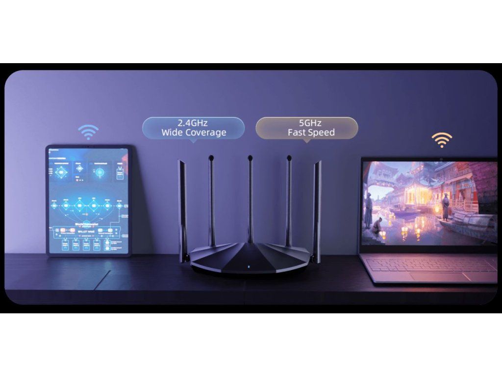 Dvoupásmový router - podpora 2,4 a 5GHz Výhod využití obou pásem je hned několik. Samozřejmostí je prohlížení webových stránek, stahování souborů, emaily apod. ale u díky dvěma pásmům také hraní náročných Online her, HD / FullHD / 4K / 8K streamování videa a zvláště aplikace kde je důležitá latence. Pásmo 2,4GHz také bývá ve větších zástavbách nebo panelových domech velmi zarušené, a dochází tak k degradaci výkonu na nižší úroveň, při použití i 5GHz vám tato starost zcela odpadá. Pokrytí signálem je zajištěno pomocí pěti 6 dBi antén. Je možné také využít režim zopakování signálu v režimu Universal Repeater nebo mód Přístupového bou AP mode. Router TX2 Pro sám automaticky zvolí ideální síť pro koncové zařízení.