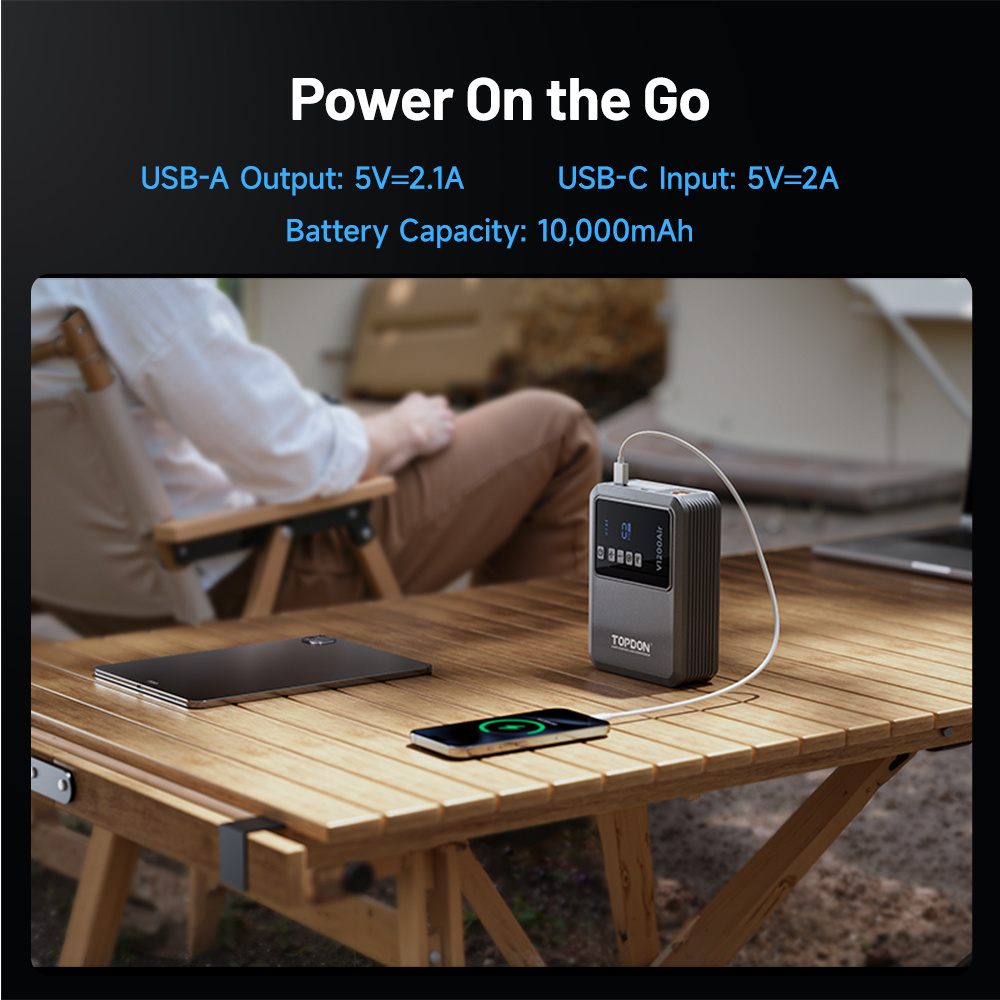 Výkonná powerbanka Zařízení navíc poslouží jako powerbanka s USB výstupem, takže kdykoliv dobijete telefon nebo jiné elektronické zařízení. Vestavěná LED svítilna se třemi režimy (osvětlení, SOS, výstraha) vám zajistí dostatek světla při práci ve tmě i bezpečnost v nouzových situacích. TOPDON V1200 Air je ideálním řešením pro každého, kdo chce být připraven na nečekané situace – ať už na silnici, v kempu nebo při každodenním používání.