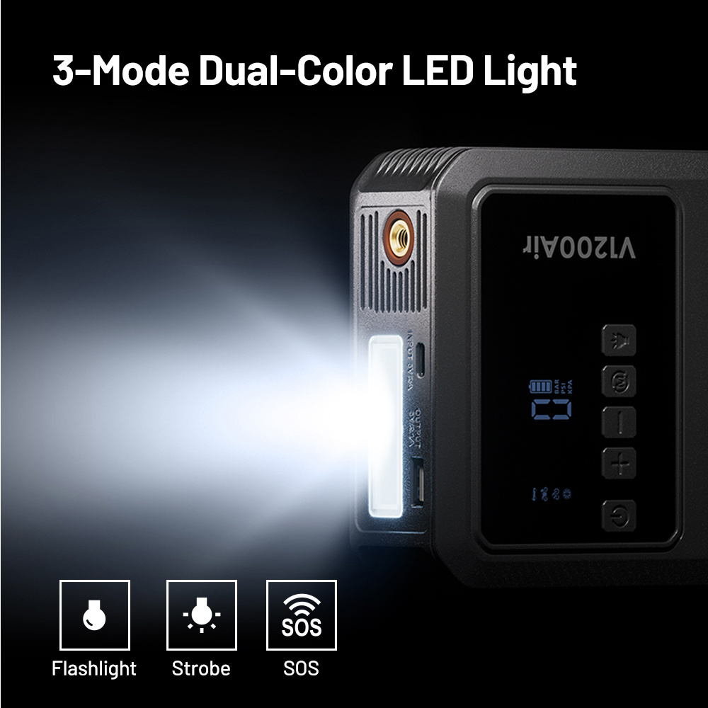Klíčové vlastnosti •Startovací proud 1200 A pro 12V vozidla (auta, motorky, SUV, lodě apod.) •Integrovaný vzduchový kompresor pro pneumatiky aut, motorek, jízdních kol i sportovní vybavení •Powerbanka s USB výstupem pro nabíjení mobilů a elektroniky •LED svítilna s více režimy (osvětlení, SOS, výstražný režim) •Kompaktní a lehký design – snadno se vejde do kufru auta •Spolehlivý parťák na cesty i do každodenního provozu •Bezpečnostní funkce: Ochrana proti zkratu, ochrana proti zpětnému proudu, ochrana proti přepětí, ochrana proti nadměrnému proudu, ochrana proti přehřátí, ochrana proti přepólování, ochrana proti nadměrnému vybití