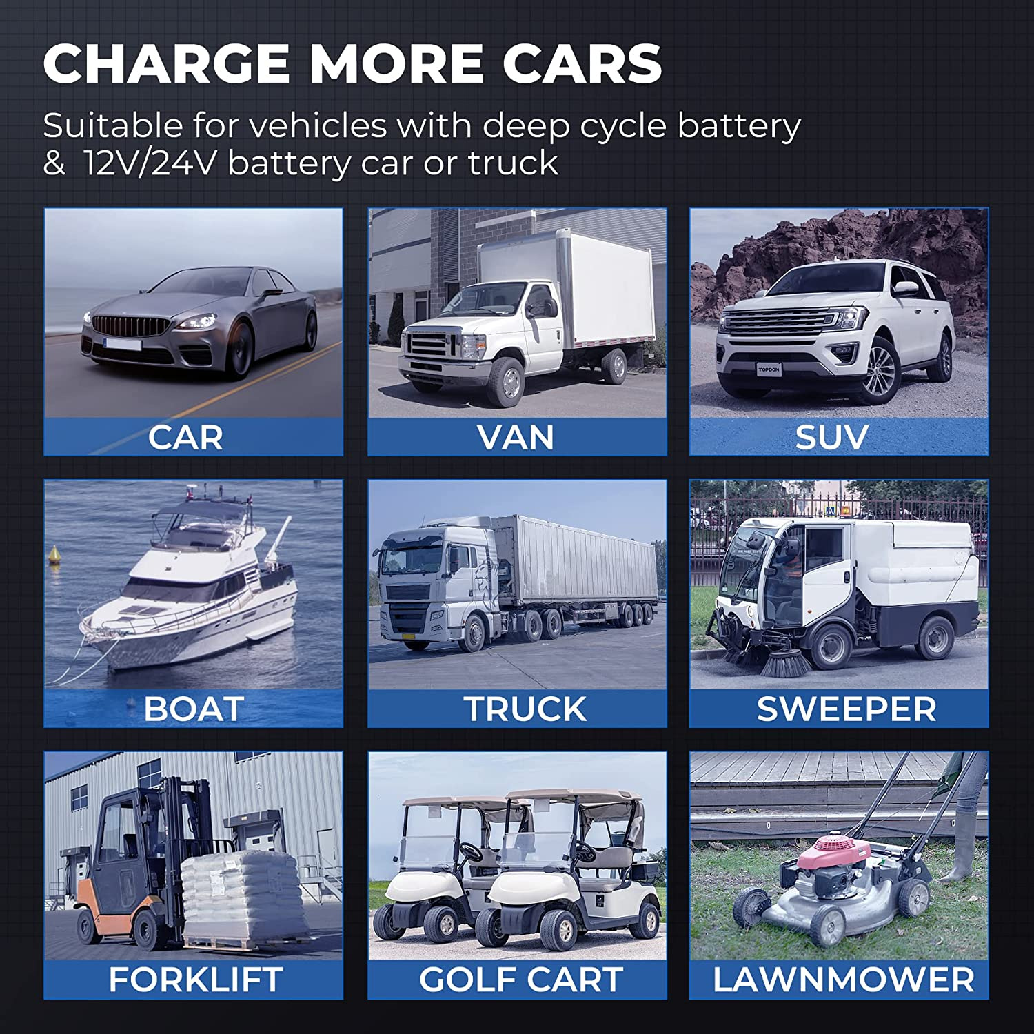 Vďaka podpore 6V, 12V a 24V batérií je toto nabíjačka vhodná pre viac typov batérií, vrátane AGM, LI WET, GEL, MF CAL a EFB!