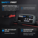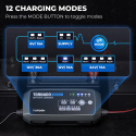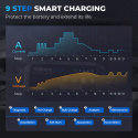 9stupňové inteligentné nabíjanie poskytuje silnú ochranu batérie a automatický systém odpojenia eliminuje riziko prebíjania. Používajte režimy NORM (bežné)/COLD (v chlade)/REPAIR (oprava), aby ste sa prispôsobili potrebám vašej batérie a tým predĺžili jej životnosť.