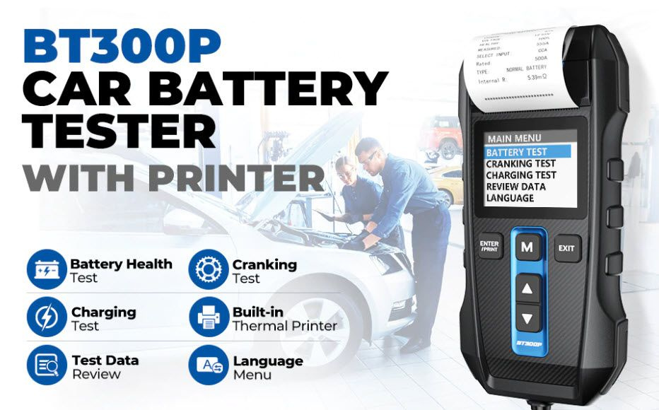 Rozpozná zlyhanie štartovacích a nabíjacích systémov v 12 V a 24 V autách, motorkách, nákladných vozidlách, obytných vozidlách, ATV, terénnych vozidlách, lodiach, jachtách, atď. Väčšina problémov s vozidlom spôsobených vadnou batériou môže byť vyriešená s prístrojom BT300P.