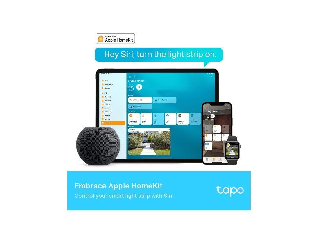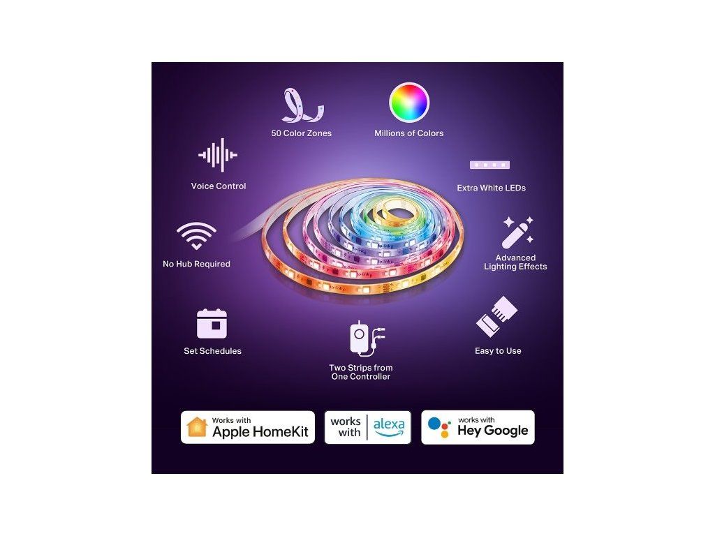 Chytrý Wi-Fi světelný pásek, barevný Ovládání barevných zón – vytvořte si 50 přizpůsobených barevných zón se světelným nastavením, které vyhoví každé náladě nebo podmínkám. Extra bílé LED osvětlení – funguje jako klasické osvětlení a zvyšuje tak možnosti využití barevného světelného Wi-Fi pásku. Zábavné světelné efekty – bavte se díky sofistikovaně navrženým animovaným světelným efektům, které najdete v aplikaci Tapo. Synchronizace s hudbou – vyzařuje dynamické osvětlení vytvářející elektrizující atmosféru v rytmu okolo hrající hudby. Podpora Apple HomeKit – ovládejte světelný pásek pomocí Siri s funkcí Apple HomeKit. Hlasové ovládání – kompatibilní s vašimi chytrými hlasovými asistenty, včetně Alexy a Asistenta Google. Povrchová úprava – vysoce kvalitní PU povrchová úprava zajišťuje trvanlivost, jednotnost a kompaktnost. Wi-Fi připojení – se stabilním připojením k vaší síti pásek skvěle funguje bez nutnosti připojení k hubu. Snadné zprovoznění – pomocí 3M pásky přilepte světelný pásek na požadované místo, připojte jej k Wi-Fi a nakonfigurujte pomocí aplikace. Chytré akce: Vytvářejte inteligentní automatizace pomocí aplikace Tapo VÍCE ZDE