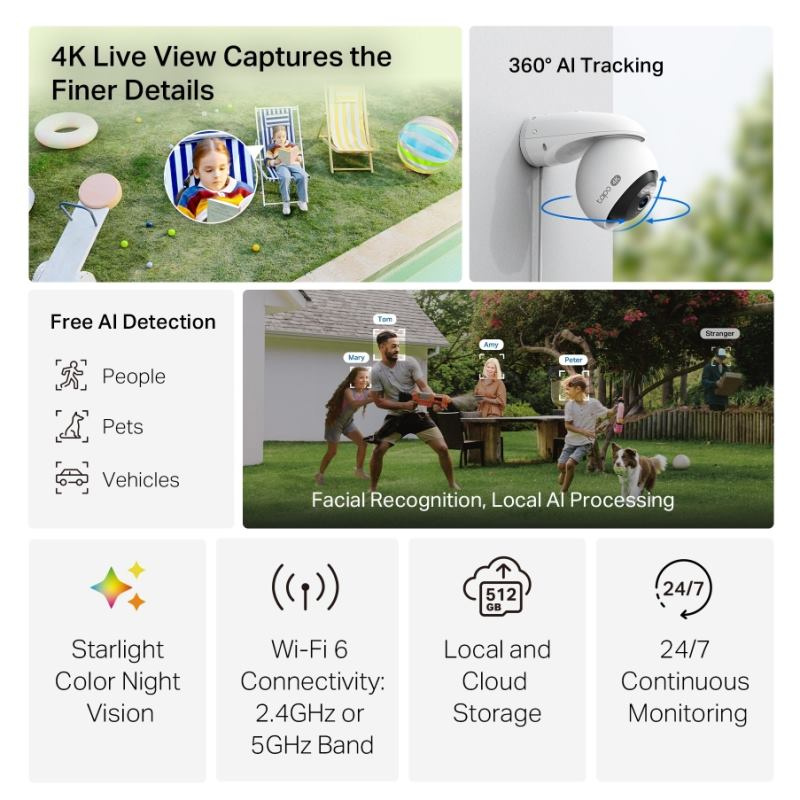 4K Ultimate View - Vonkajšia bezpečnostná kamera Tapo C560WS poskytuje najvyššiu kvalitu obrazu v rozlíšení 4K, ktorá zachytí aj tie najmenšie detaily okolia vášho domova.