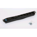 RAB-PD-X07-A1 19',8xCZ zásuvka,bleskojistka,3x1.5mm 2m kabel CZ-DE, RAL9005 19'' rozvodný panel 1U, 8x zásuvka podle ČSN, max 16A, kabel 3x1,5mm, 2m + zástrčka univerzál CZ-DE max. 16A, varistorová bleskojistka, RAL 9005 PŘÍBAL Šroub M6 x 16 s podložkou.................... 2x Plovoucí matice M6................................ 2x
