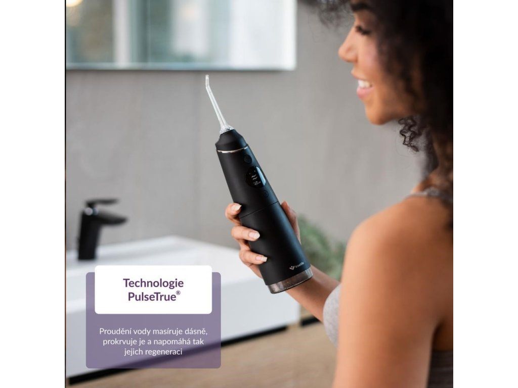 Úplná väčšina zubných kazov vzniká v medzizubných priestoroch. Ich pravidelné čistenie je preto nutnosť. Býva ale zdĺhavé a často nie úplne príjemné. S ústnou sprchou TrueLife AquaFloss Compact C300 je čistenie medzizubných priestorov o mnoho jednoduchšie a šetrnejšie. Vďaka technológii StreamTrue® prúd kvapiek vody a vzduchu, ktorý vychádza z trysky ústnej sprchy, dokonale prenikne aj do najmenších priestorov, kde účinne odstraňuje až 99 % zubného povlaku i baktérií. Vďaka kompaktnému dizajnu a výdrži batérie môžete so sprchou bez obáv cestovať. Jej používanie je ľahké a vyžaduje minimum nácviku. Sprcha ponúka 5 režimov čistenia s rôznymi intenzitami tlaku, vrátane režimu Pulse s technologiou PulseTrue®, vďaka ktorej prístroj masíruje ďasná, prekrvuje ich a napomáha tak ich regenerácii. Vďaka funkcii DIY si môžete vytvoriť vlastný režim čistenia, v ktorom si zvolíte intenzitu tlaku vody, ktorá vám bude najviac vyhovovať. Prístroj má 6 špeciálnych trysiek, ktoré sú navrhnuté pre vaše konkrétne potreby.
