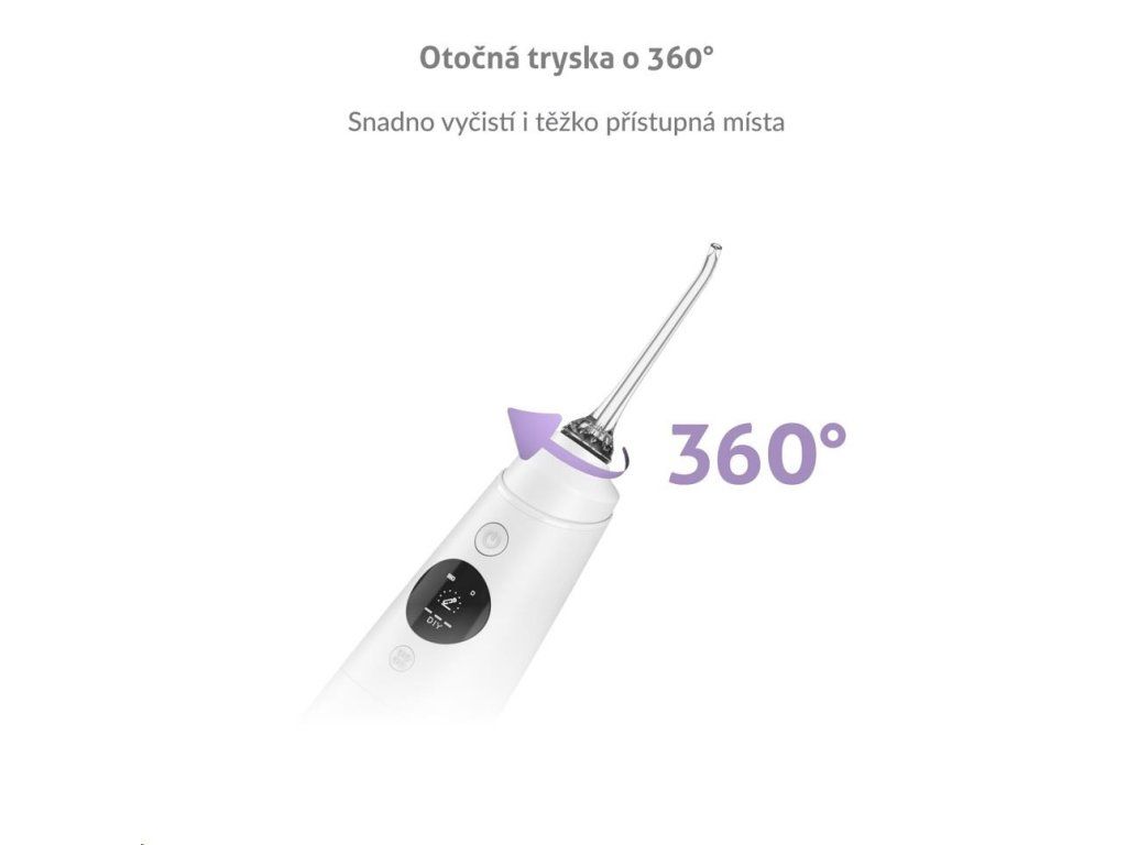 Hlavica trysky je otočná o 360 stupňov, takže jednoducho vyčistí všetky zákutia vašich úst.