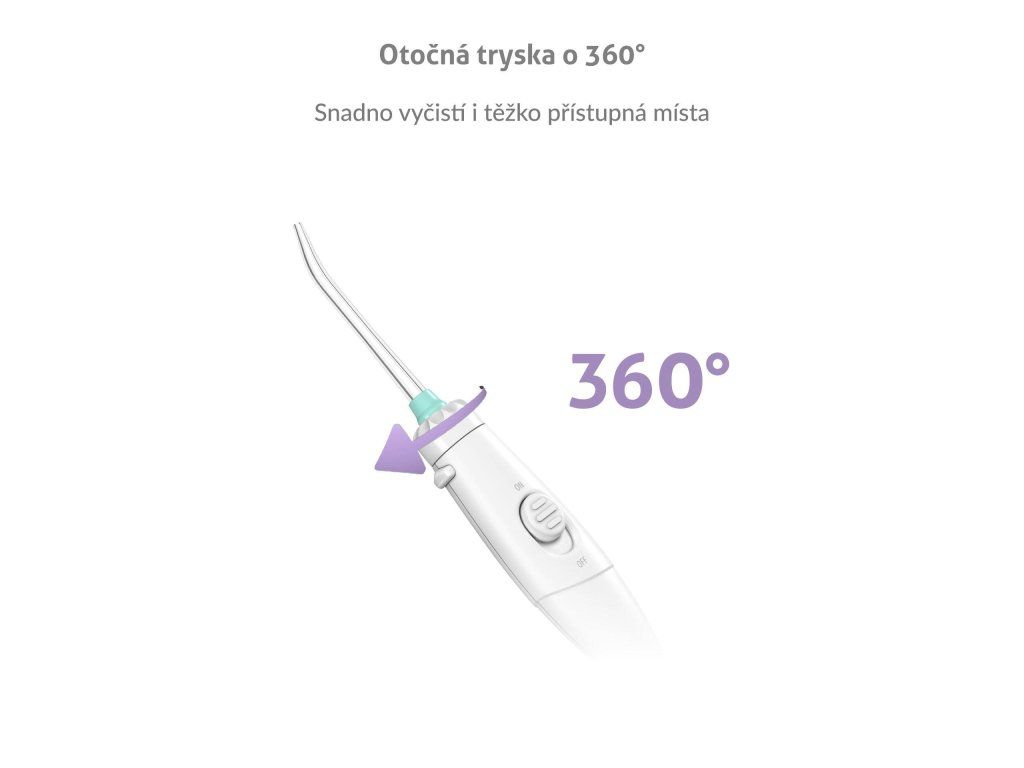 Hlavica trysky je otočná o 360 stupňov, takže jednoducho vyčistí všetky zákutia vašich úst.
