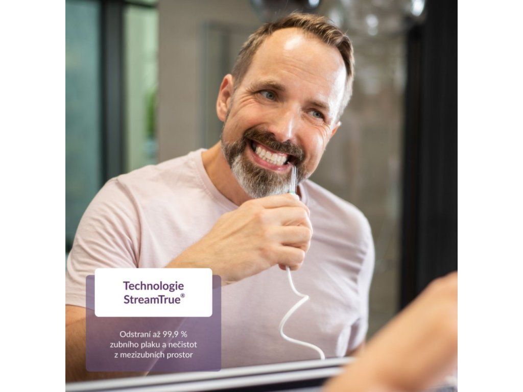 Pravidelné čistenie medzizubných priestorov by malo byť každodennou súčasťou vašej dentálnej rutiny. V dospelosti totiž vzniká až 95 % kazov práve v úzkych medzierkach medzi zubami. Ich pravidelné čistenie navyše pomáha predísť aj zápalu ďasien alebo paradentóze. S ústnou sprchou TrueLife AquaFloss Station S600 je čistenie medzizubných priestorov jednoduchšie a šetrnejšie, než pri použití medzizubných kefiek, či nití. Vďaka technológii StreamTrue® zubná sprcha odstráni až 99 % zubného povlaku a vyčistí vaše zuby tak, ako to samotná kefka nikdy nedokáže. Sprcha ponúka 10 tlakových úrovní a 6 špeciálnych trysiek pre rôzne dentálne potreby.