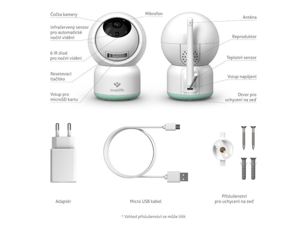 TrueLife NannyCam R3 Smart – smart pestúnka s neobmedzeným dosahom Dopraje si pokoj, pretože viete, že je vaše dieťatko v poriadku. Nenápadný strážca bábätiek i starších detí v podobe pestúnky TrueLife NannyCam R3 Smart sa postará, že budete mať svoju ratolesť neustále na očiach, nech už ste kdekoľvek. Pestúnku jednoducho spárujete so svojim mobilným telefónom a v aplikácii TrueLife Smart, ktorá je kompletne v slovenskom jazyku. Môžete nielen sledovať, čo dieťa práve robí, ale tiež nastaviť rôzne smart funkcie. Všetko je jednoduché, rýchle a bezpečné. Rotačná pestúnka nepretržite monitoruje priestor, kde sa dieťa nachádza a poskytuje obraz vo Full HD kvalite. Vie detegovať pohyb, zvuk i teplotu a v pravý čas upozorniť, keď sa niečo deje. Uspávanky zase pomôžu vaše dieťatko uspať a vytvoriť mu príjemné prostredie. Vidíte všetko a odkiaľkoľvek Rotačná pestúnka TrueLife NannyCam R3 Smart dokáže sledovať pohyb a otáčať sa za ním. Navyše jej širokouhlá šošovka vidí do všetkých zákutí a v šere automaticky aktivuje nočné videnie. Dosah pestúnky je vďaka pripojeniu cez internet neobmedzený a vo chvíli, keď máte obrazovku telefónu vypnutú, ona určite nespí. Zaznamená každý pohyb a zvuk a pošle vám oznámenie do vášho telefónu. Záznam navyše môže nahrávať aj v režimu 24/7 na SD kartu. Aplikácia TrueLife Smart, s ktorou vám nič neunikne Pestúnku TrueLife NannyCam R3 Smart jednoducho spárujete so svojim telefónom alebo iným smart zariadením vďaka aplikácii TrueLife Smart, ktorá je kompletne v slovenskom jazyku. Nepotrebujete teda žiadnu ďalšiu jednotku navyše. Účet sa dá zdieľať aj s ďalšími ľuďmi, napríklad partnerom alebo prarodičmi a počet účastníkov nie je obmedzený. Aplikácia TrueLife Smart navyše používa päťvrstvovú bezpečnostnú technológiu so šifrovaním dát na vojenskej úrovni AES, vďaka ktorej sa nemusíte obávať žiadneho narušenia zvonku. Vaše dieťatko tak zostane v bezpečí. Prečo taká ochrana? Strážime predsa váš najväčší poklad. Postráži aj upokojí Prostredníctvom aplikácie TrueLife Smart si pestúnku TrueLife NannyCam R3 Smart nastavíte presne podľa potrieb seba aj dieťaťa. Pre váš pokoj zaznamenáva inteligentný detektor zvuk, pohyb i teplotu a v prípade zmien obdržíte upozornenie na svoj telefón. Dieťatku pestúnka poskytuje upokojenie v podobe uspávaniek, a dokonca dokáže napodobniť aj tlkot srdca. Ak reaguje dieťa skôr na váš hlas, môžete s ním komunikovať vďaka obojsmernej komunikácii. Túto funkciu určite oceníte aj u starších detí. TrueLife Smart aplikácia Prostredníctvom QR kódu si pestúnku jednoducho spárujete so svojim mobilným telefónom a v aplikácii TrueLife Smart, ktorá je kompletne v slovenskom jazyku, nastavíte všetko potrebné. Účet navyše môžete zdieľať aj s ďalšími členmi domácnosti. Čistý obraz vo Full HD Kamera dokáže natáčať až v 1080p Full HD videu. Všetky okamihy teda zachytí v tej najlepšej kvalite. Neobmedzený dosah S neobmedzeným dosahom vďaka pripojeniu cez internet máte dohľad nad svojim dieťaťom odkiaľkoľvek, napríklad aj z práce. Uspávanky Pestúnka disponuje 5 uspávankami a napodobením tlkotu srdca mamičky. Automatické nočné videnie Pestúnka sa v tme automaticky prepne do režimu nočného videnia, takže o dieťatku máte prehľad v akúkoľvek dennú dobu. Obojsmerná komunikácia Vďaka obojsmernému prenosu zvuku môžete plačúce dieťa utíšiť vlastným hlasom napríklad aj z vedľajšej miestnosti. Detekcia na pohyb, zvuk a teplotu Pri zachytení pohybu, zvuku alebo nežiaducej teploty vám pestúnka odošle oznámenie do mobilného telefónu. Sledovanie a otáčanie za pohybom Rotačná pestúnka disponuje schopnosťou zachytiť pohyb a otáčať sa za ním. Túto funkciu môžete napríklad využiť pre staršie deti či domácich miláčikov. Nepretržité nahrávanie Pestúnka môže nahrávať nepretržite v režime 24/7 dianie v miestnosti a ukladá ho na microSD kartu. Neobmedzený počet užívateľov S možnosťou zdieľania účtu s viac členmi domácnosti budete mať prehľad o vašom dieťati vy, váš partner aj prarodičia. Zabezpečenie proti hackerom Päťvrstvová bezpečnostná technológia zaručuje, že sú všetky vaše dáta v bezpečí a žiaden hacker sa ku nim nedostane. Zhotovenie fotografií a videí V aplikácii TrueLife Smart môžete zhotovovať fotografie alebo videá a následne si ich zobraziť v galérii aplikácie. Vertikálne i horizontálne otáčanie Vďaka širokouhlej šošovke s pozorovacím uhlom 100° máte úplný prehľad o dianí v miestnosti vášho dieťaťa. Kamera sa otáča ako horizontálne, tak i vertikálne. Nemusíte mať strach, že by vám čokoľvek uniklo. Uchytenie na stenu V balení nájdete tiež montážnu sadu pre uchytenie na stenu. Uchytenie na postieľku Dokúpiť si môžete tiež praktický držiak TrueLife NannyCam Holder, ktorý stačí jednoducho obmotať napríklad na detskú postieľku. Je skladný a môžete si ho dokonca vziať kamkoľvek so sebou. Cloudové riešenie Predplatiť si tiež môžete cloudové úložisko a všetky záznamy ukladať tam. Viac kamier v aplikácii Ku TrueLife Smart aplikácii môžete dokúpiť a pripojiť až 16 kamier a mať tak dohľad nielen nad svojim dieťaťom. Prevádzka na powerbanku V prípade, že cestujete, môžete vziať pestúnku so sebou. TrueLife NannyCam R3 Smart totiž môžete napájať aj z powerbanky. Parametre TrueLife NannyCam R3 Smart Pozorovací uhol 100 ° Otáčanie kamery horizontálne 350 ° (umožňuje zobrazenie v uhle 360 °) Otáčanie kamery vertikálne 45 ° (umožňuje zobrazenie v uhle 90 °) Automatické nočné videnie Áno (viditeľnosť až 10 m) Formát videa MP4, kompresia H.264 WiFi 2,4 GHz (nepodporuje 5GHz) dosah 15 metrov kamera