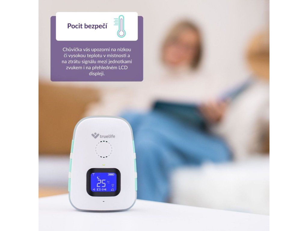 Majte svojich najmenších pod dohľadom, aj keď s nimi práve nie ste v miestnosti. Digitálna audio pestúnka TrueLife NannyTone VM3 zachytí každý zvuk a prenesie ho do rodičovskej jednotky až na vzdialenosť 800 m v nezastavanej oblasti a až 300 m v budove. Než ku dieťaťu prídete, môžete ho utešovať cez pestúnku vďaka možnosti obojsmernej komunikácie. Vybrať je možné aj z 8 integrovaných uspávaniek. Poteší tiež tichým režimom s vibráciami. Integrované batérie v oboch jednotkách majú naozaj dlhú výdrž, pokiaľ by však dochádzali, pestúnka vás včas upozorní. Obdobne sa ihneď dozviete, ak príde ku strate signálu alebo detektor zaznamená nízku či vysokú teplotu v izbe dieťatka.