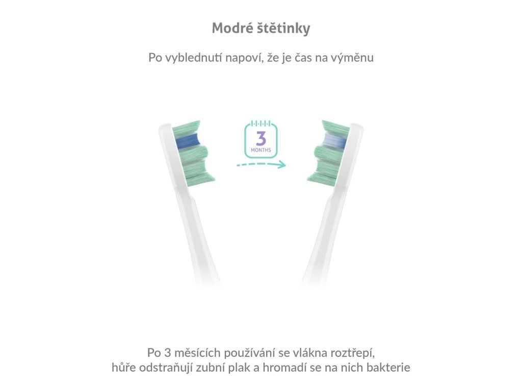 Hlavicu kefky treba približne po 3 mesiacoch vymeniť. To indikujú modré štetinky, ktoré postupne zbelejú.