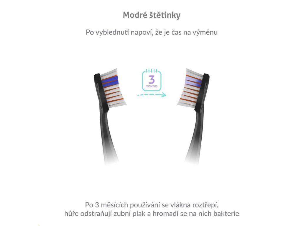 Hlavice vydržia až 3 mesiace používania, potom sa začnú trepotať, strácajú účinnosť a navyše sa na nich hromadia baktérie. Našťastie sú hlavice opatrené modrými štetinami, ktoré po 3 mesiacoch vyblednú a vy tak viete, že je načase hlavicu vymeniť.