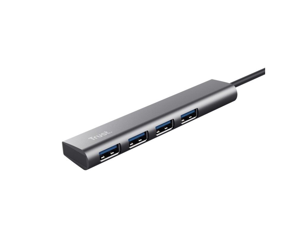 Trust Halyx - 4portový USB Hub 3.2 Gen1 stylový hliníkový rozbočovač USB přidává k počítači s portem USB-C 4 extra porty USB-A s rychlostí 5Gb/s